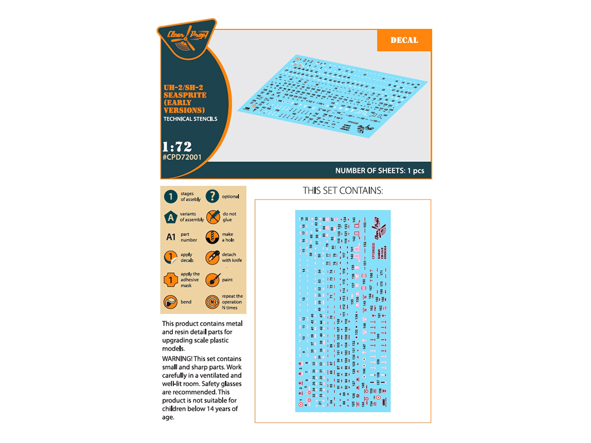 CPD72001 Clear Prop Декали для модели Kaman UH-2A (HU2K-1)/UH-2B/SH-2D Seasprite (1:72)