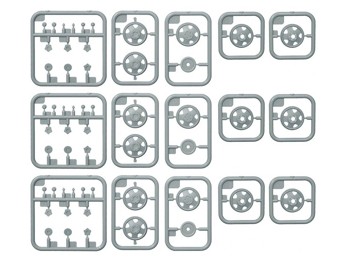 Набор пластиковых элементов для сборки модели 12 колес для советских автомобилей серии ААА в масштабе 1:35.