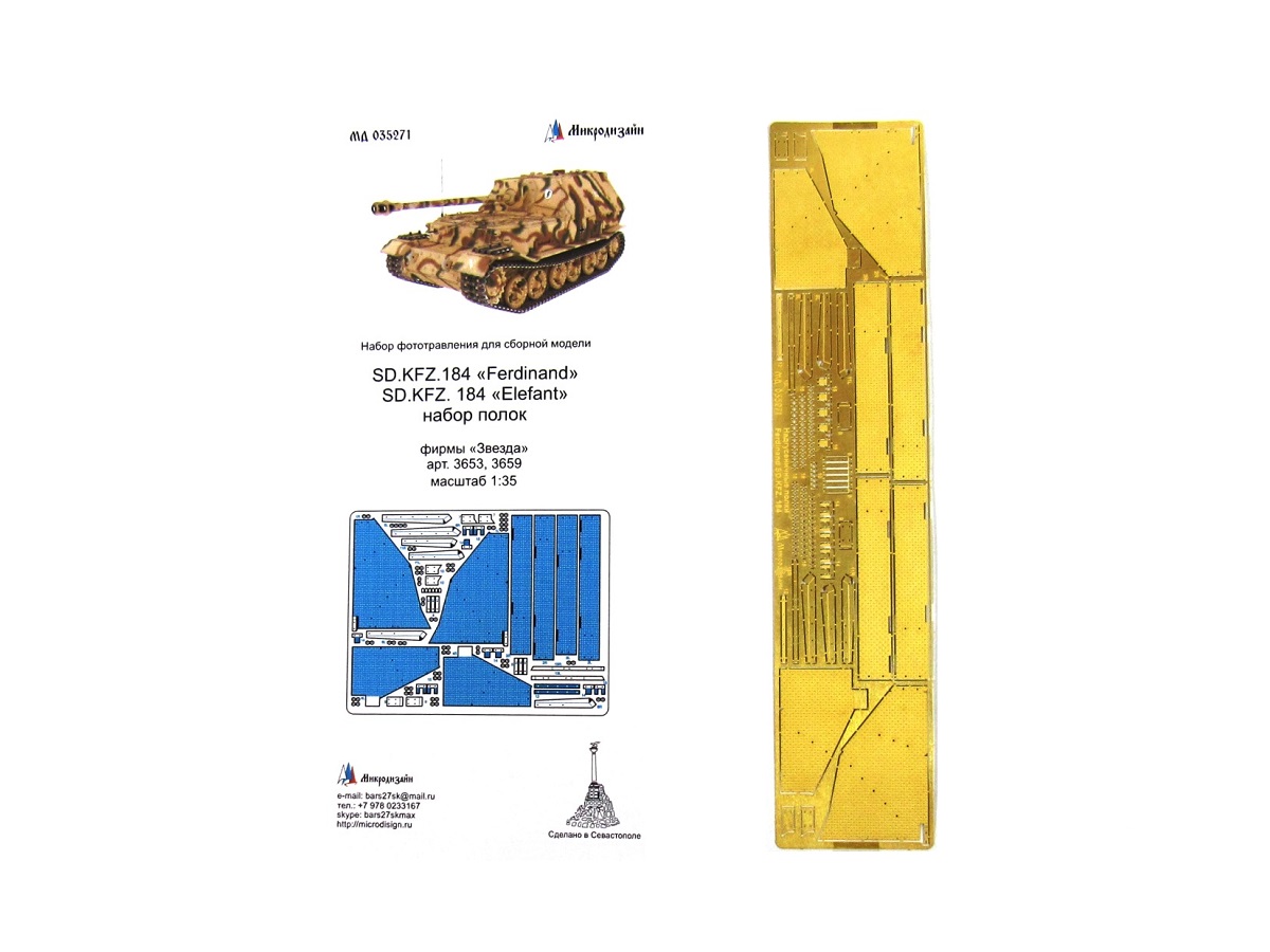 035271 Фототравление Микродизайн Sd.Kfz.184 Ferdinand. Надгусеничные полки (Звезда) (1:35)