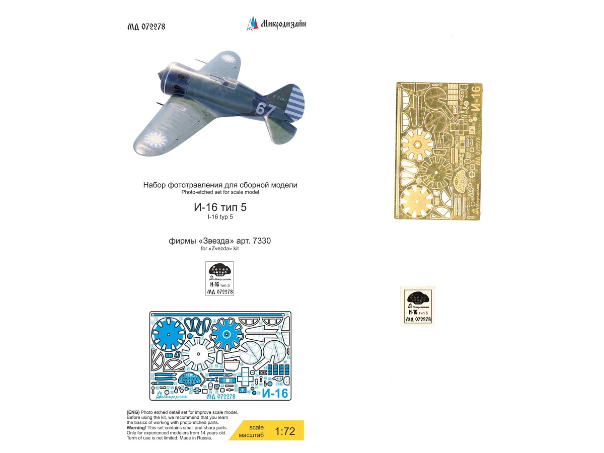 072278 Фототравление Микродизайн И-16 тип 5 (Звезда) неокрашенный (1:72)