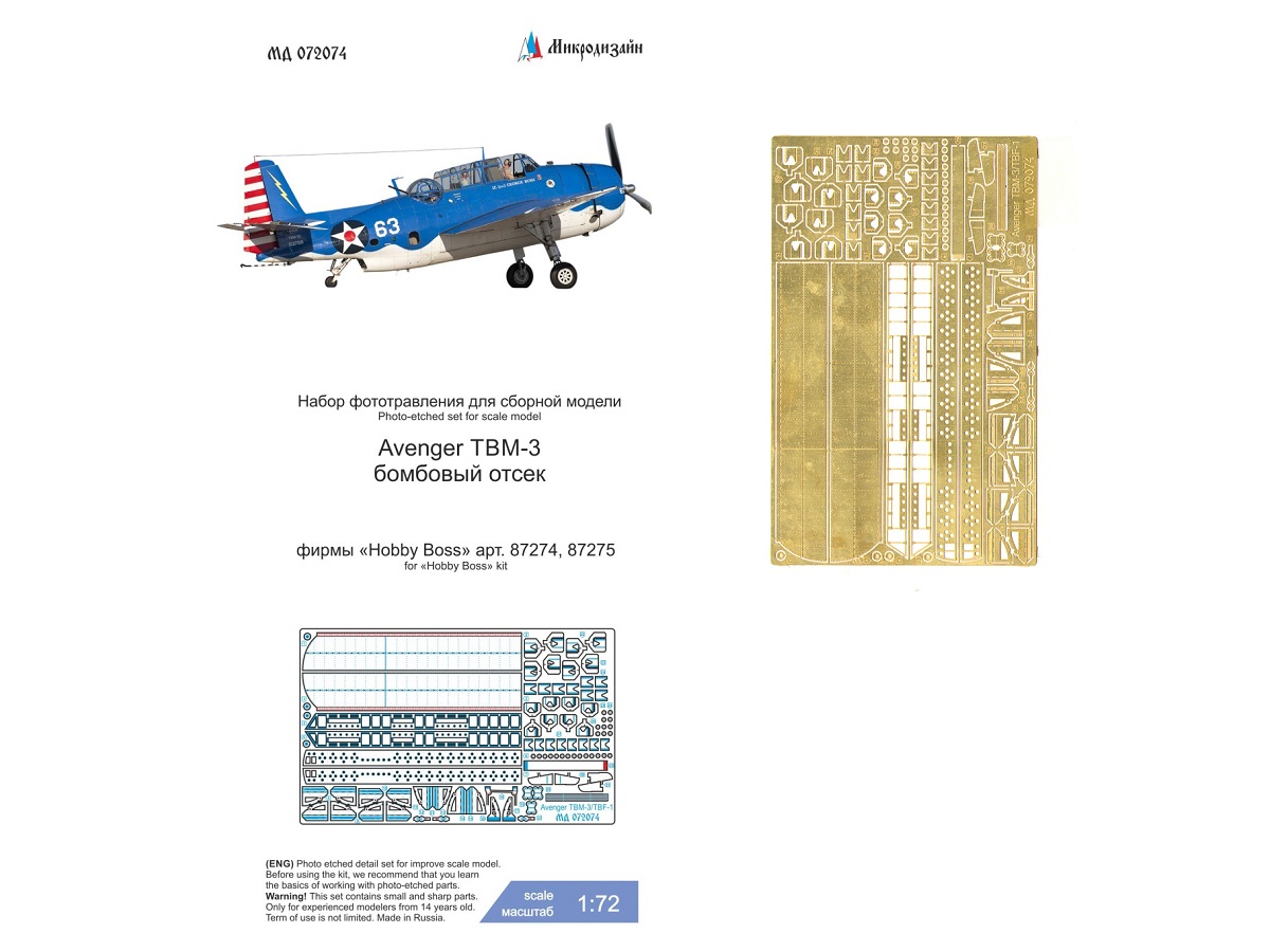 072074 Фототравление Микродизайн Grumman TBM-3 Avenger (Hobby Boss) бомбоотсек (1:72)