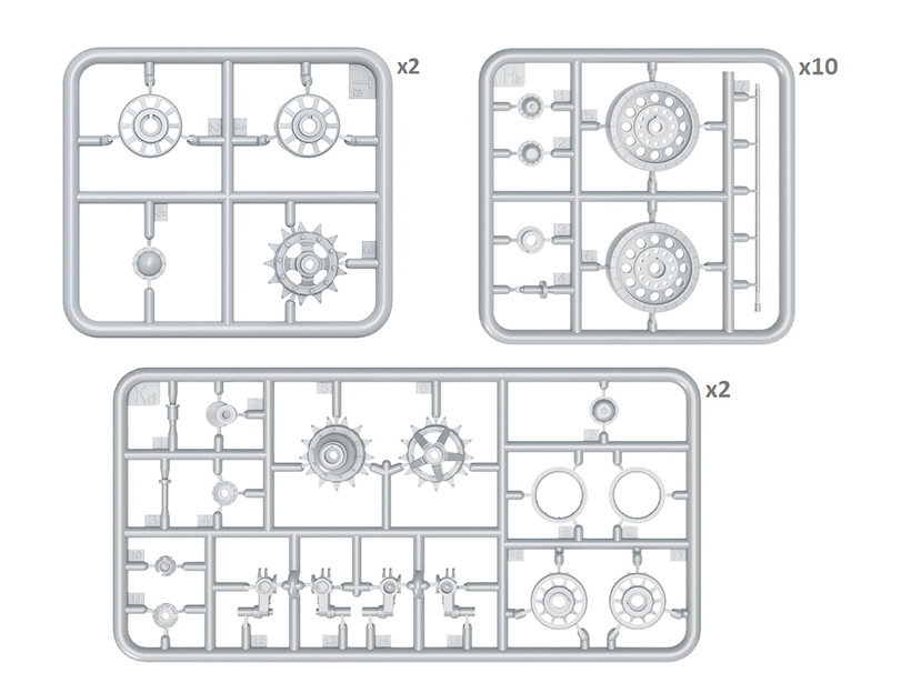 Набор пластиковых элементов для сборки катков для танка 54, 55 ранних модификаций в масштабе 1:35.