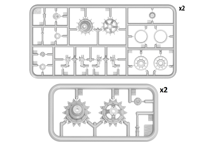 Набор пластиковых элементов для сборки катков для танка 55, 55 А в масштабе 1:35.