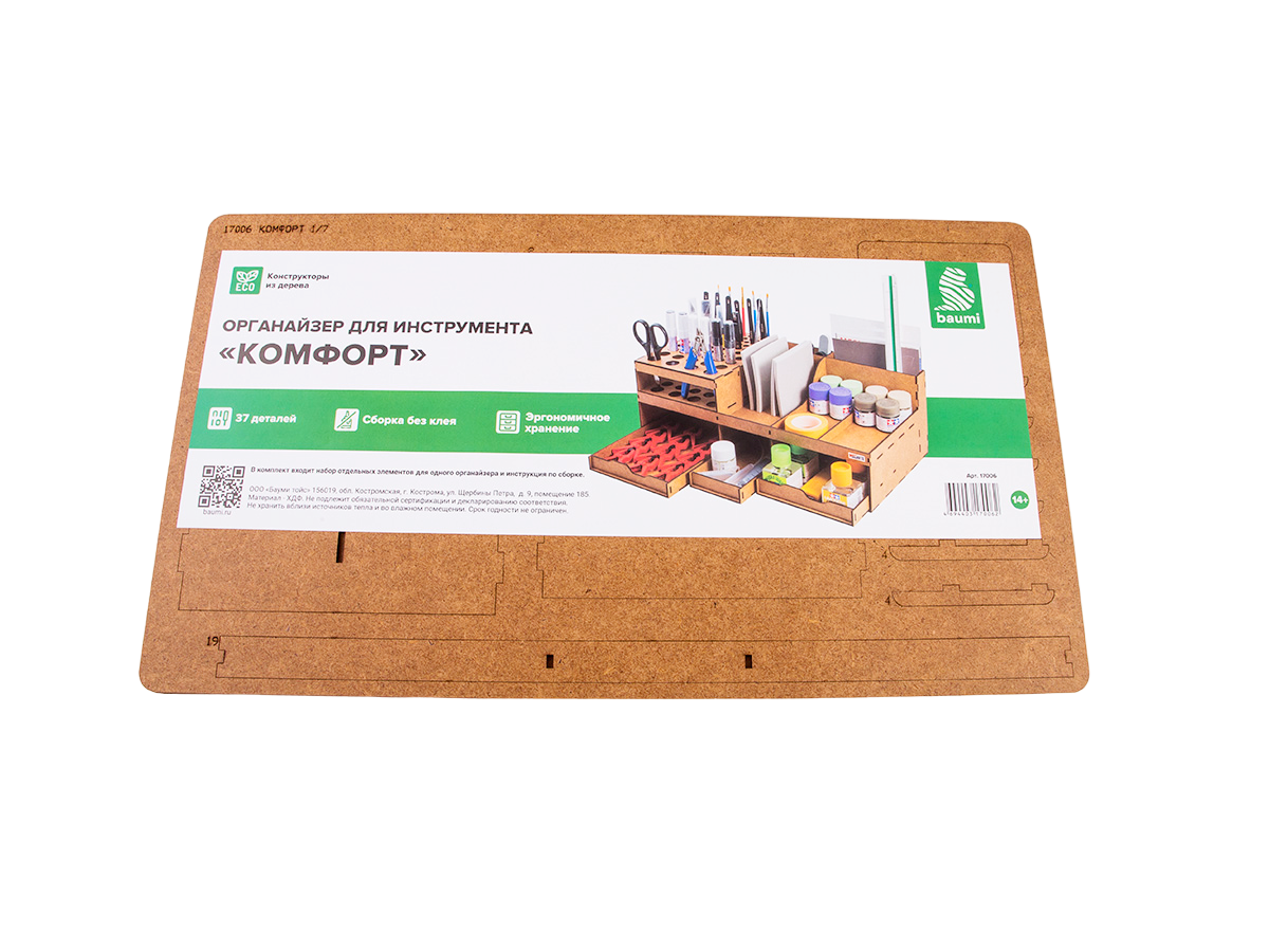 В комплект входит набор отдельных элементов для сборки одного органайзера и инструкция по сборке.