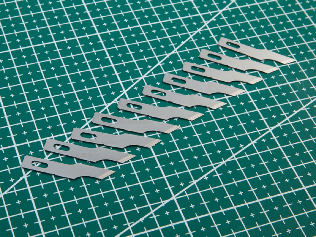 Острые профильные лезвия изготовлены из высокоуглеродистой стали, позволяют резать бумагу, картон, пластик, ткань, плёнку, кожу и другие материалы.