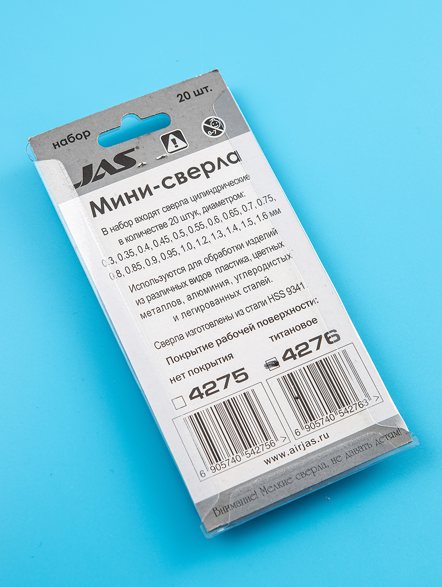 4276 JAS Мини-сверла, диаметр 0,3 - 1,6 мм, набор, 20 шт., HSS 9341, нитрид-титановое покрытие