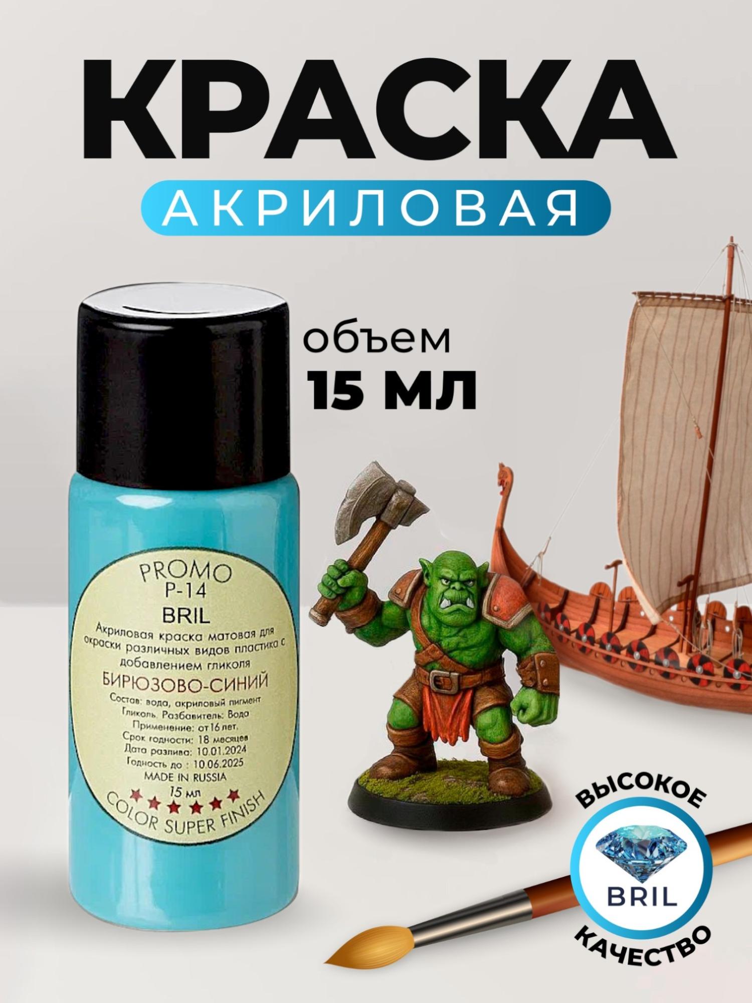 Краска акриловая BRIL 5018 Бирюзово-синий матовая, 15 мл.