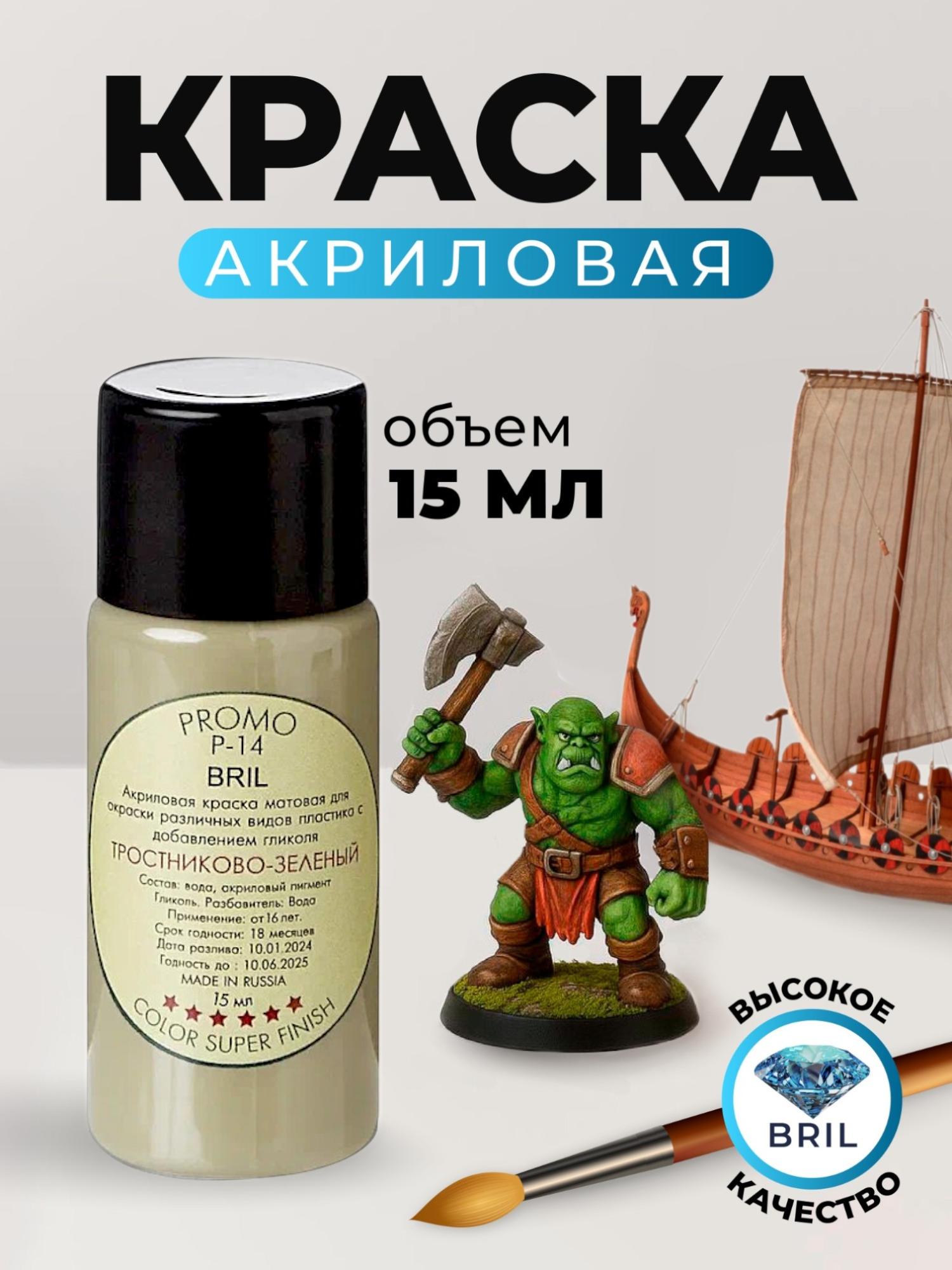 Краска акриловая BRIL 6013 Тростниково-зеленая матовая, 15 мл.