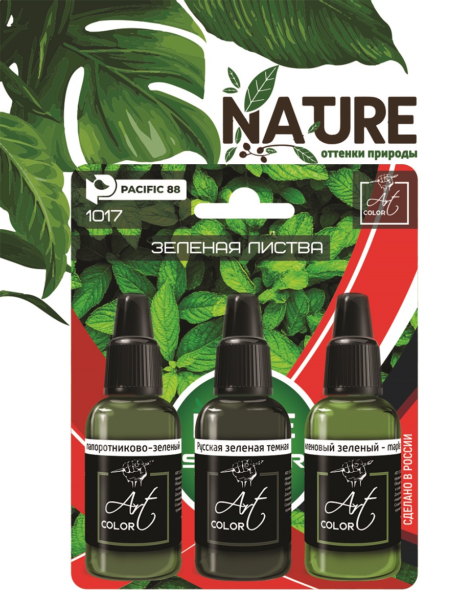 Pacific88 Набор красок Art color Starter set Зеленая листва, 3 шт., арт.1017
