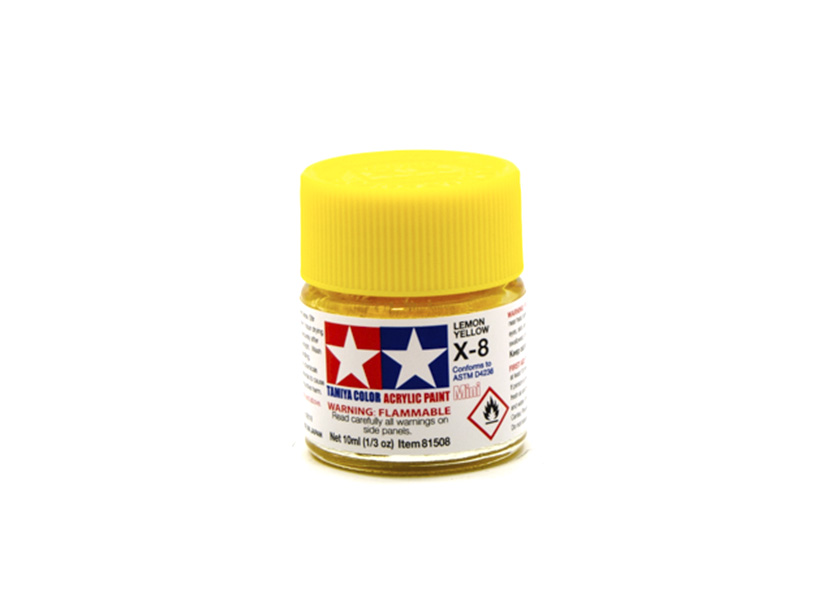X-8 Lemon Yellow gloss, acrylic paint mini 10 ml. (Лимонный Жёлтый глянцевый) Tamiya 81508