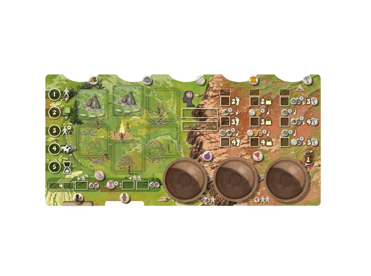 Игрокам предстоит строить жилища и увеличивать численность племени, разведывать территории и собирать ресурсы, охотиться на крупную дичь и возводить мегалиты, создавать поделки и наскальные рисунки — всё это принесёт победные очки. Игрок, набравший больше всех победных очков, победит в партии!