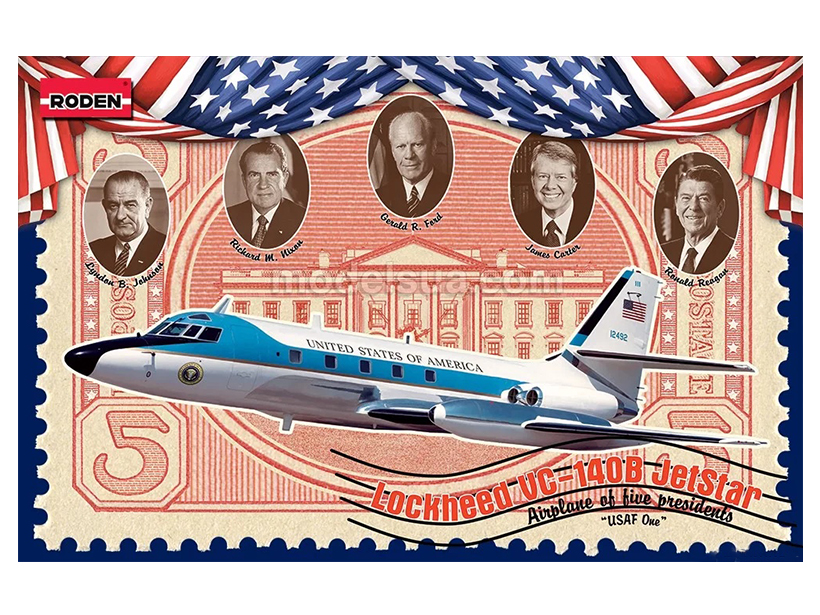 Rod324 Roden Американский реактивный административный самолёт Lockheed VC-140B Jetstar (1:144)