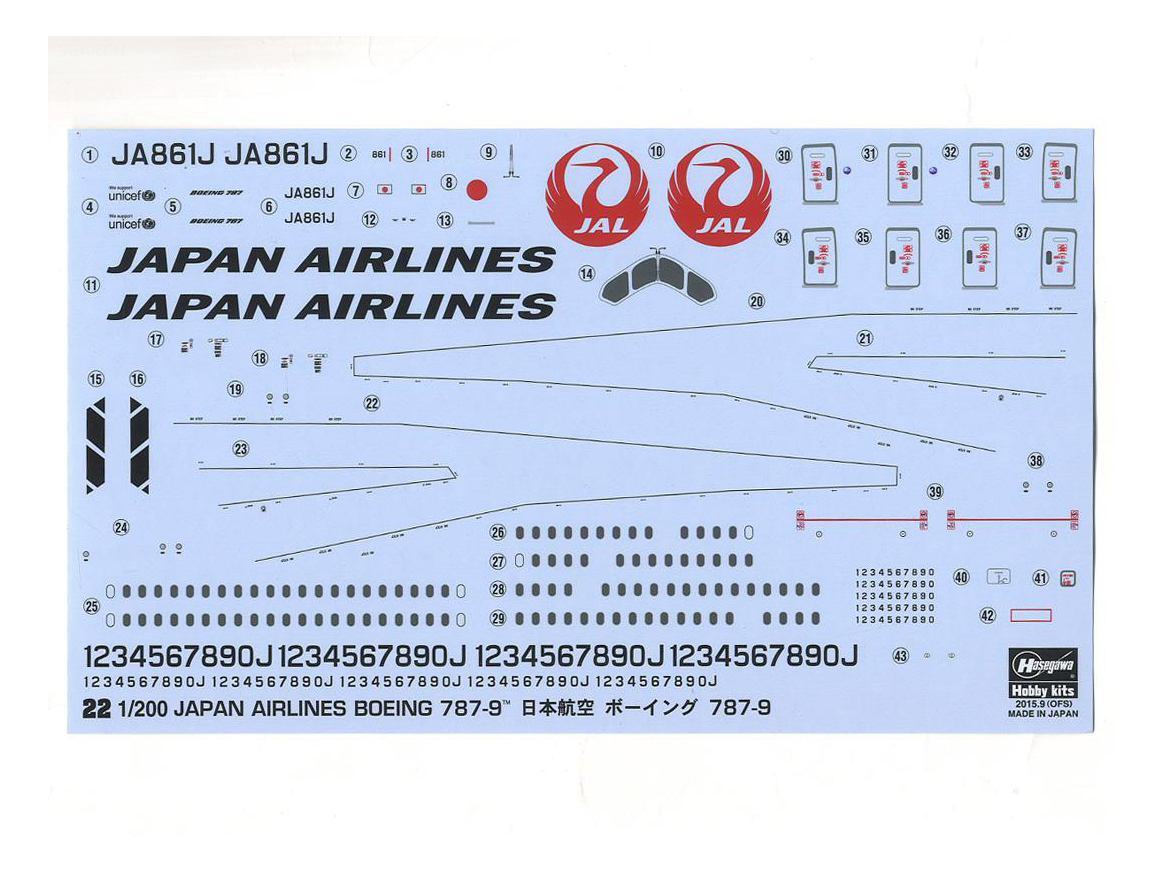 10722 Hasegawa Пассажирский самолет JAL B787-9 (1:200)