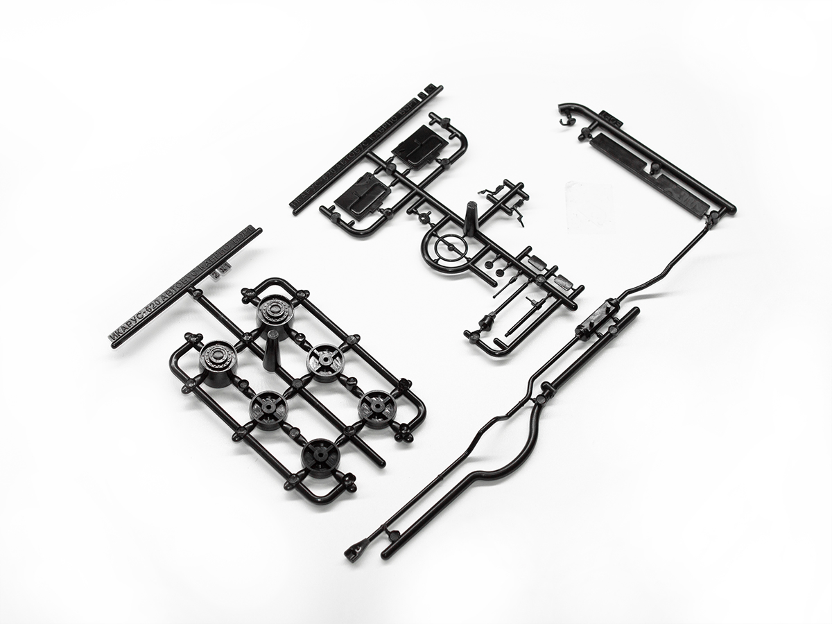Содержит детали из прозрачного пластика для элементов остекления.