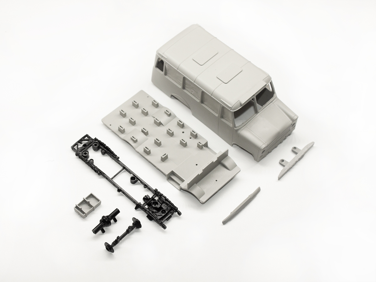 Содержит металлические элементы, детали из прозрачного пластика для элементов остекления, прочие пластиковые элементы.