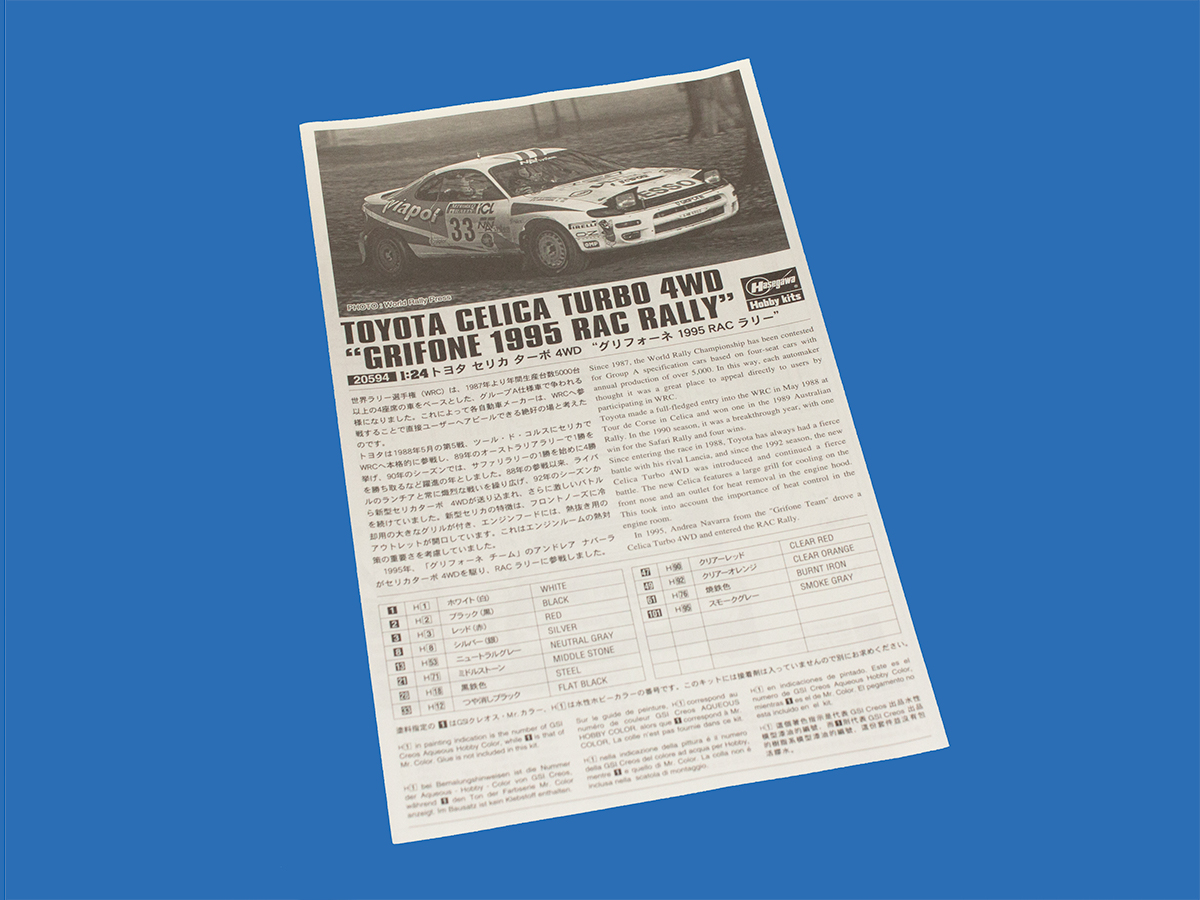 20594 Hasegawa Автомобиль Toyota Celica Turbo 4WD Grifone 1995 RAC Rally (1:24)