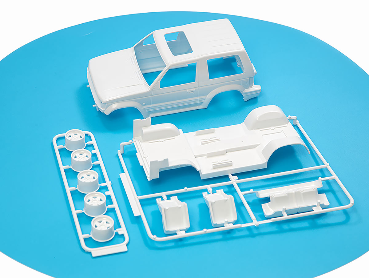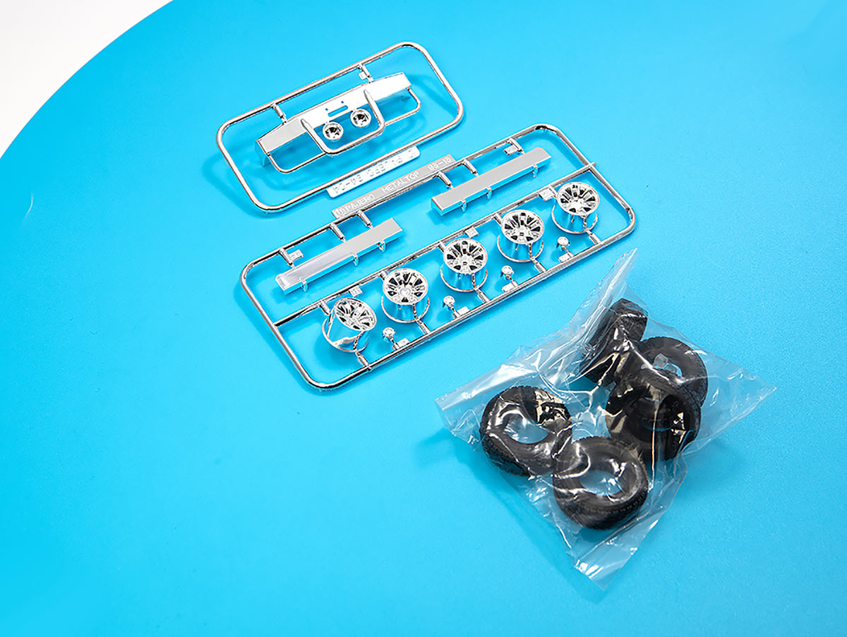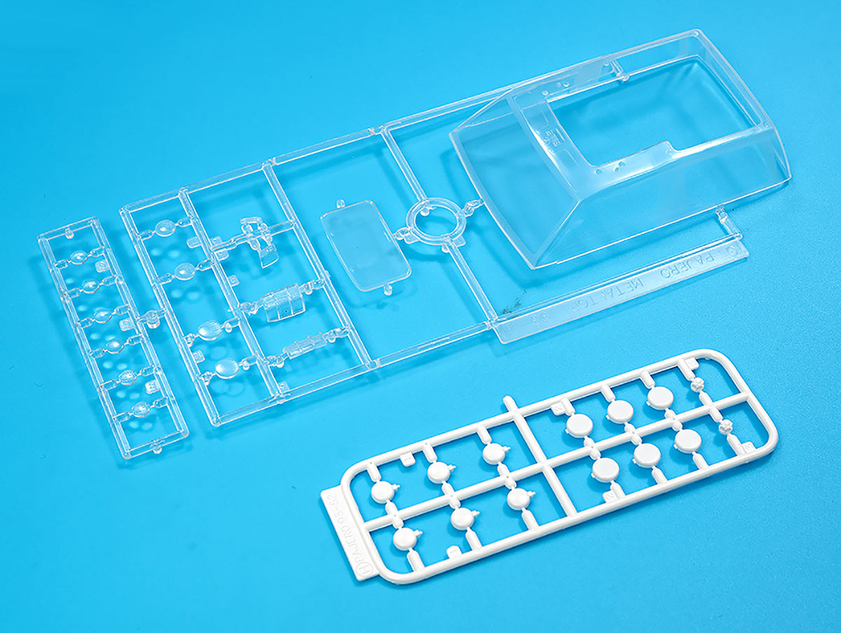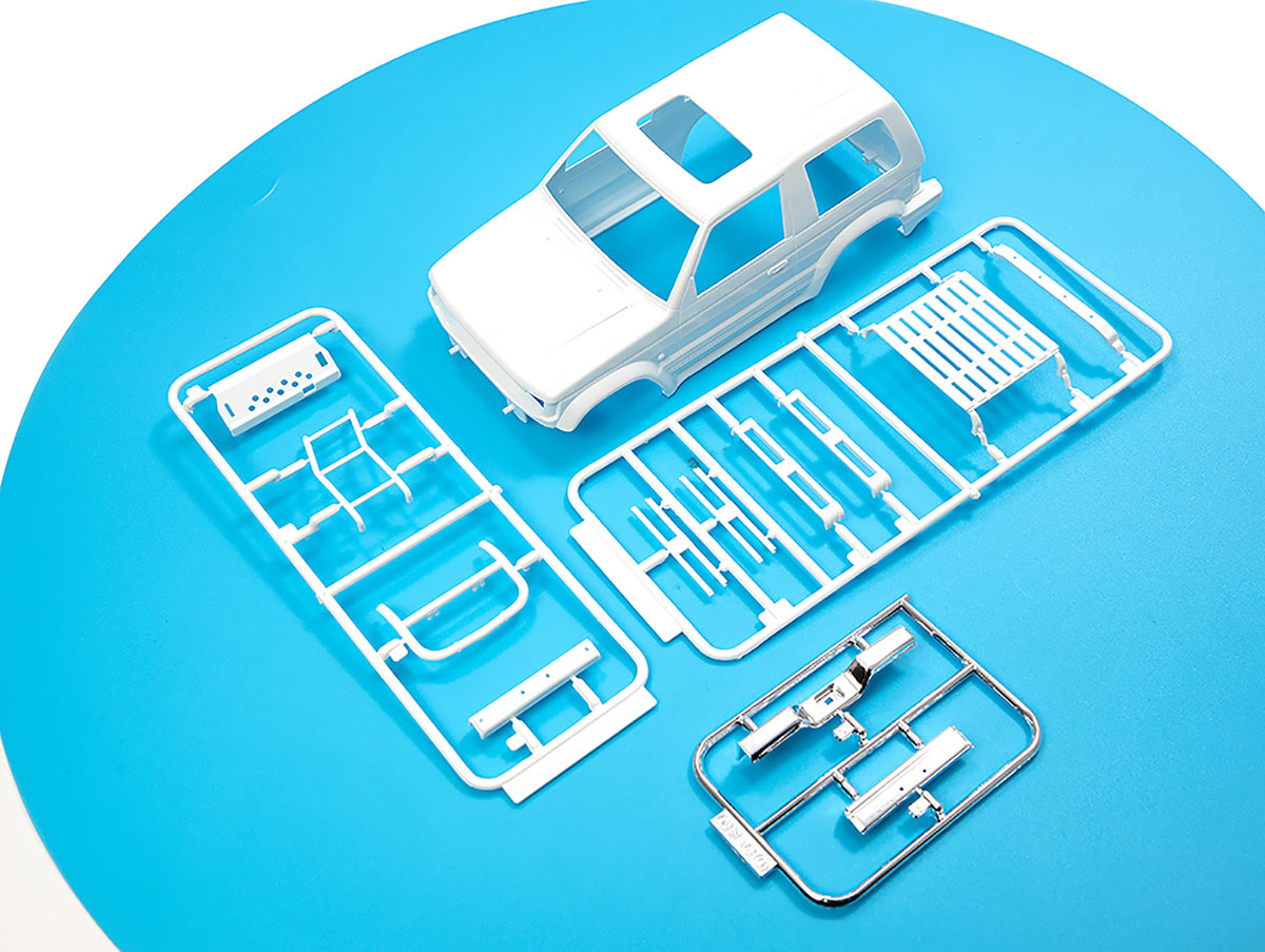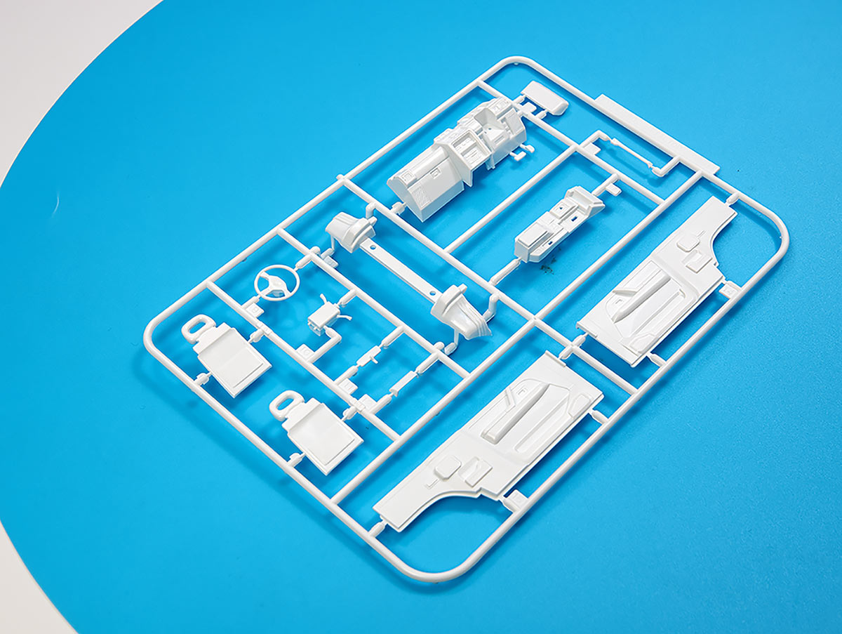 Элементы набора отлиты из пластика белого и серого цвета. Кузов отлит единой деталью.