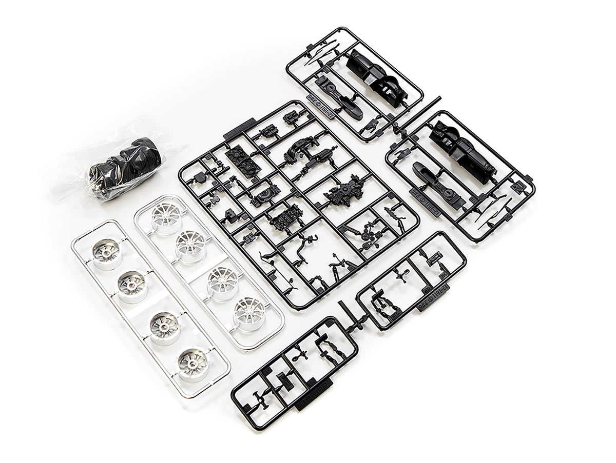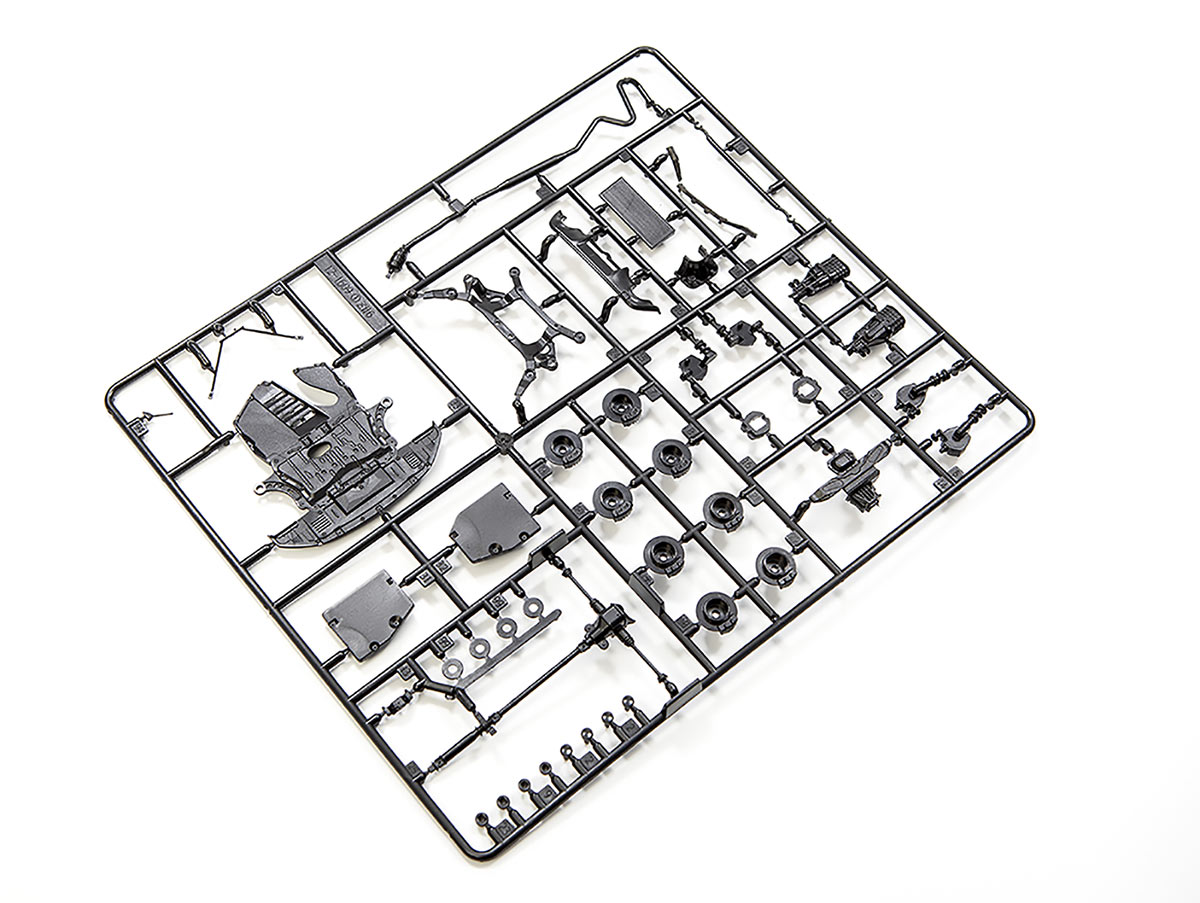 Содержит детали из блестящего хромированного пластика для отражателей фар, стёкол зеркал и других мелких подробностей.