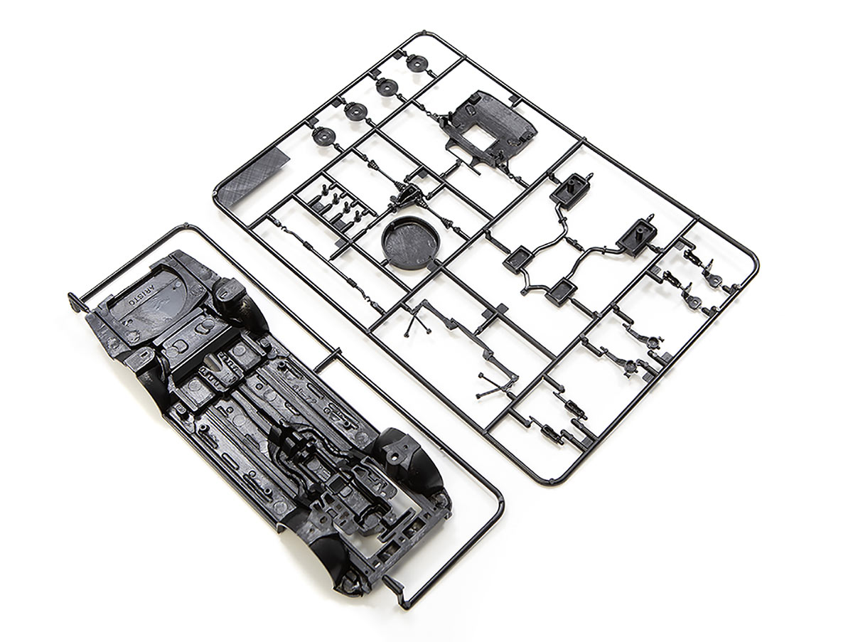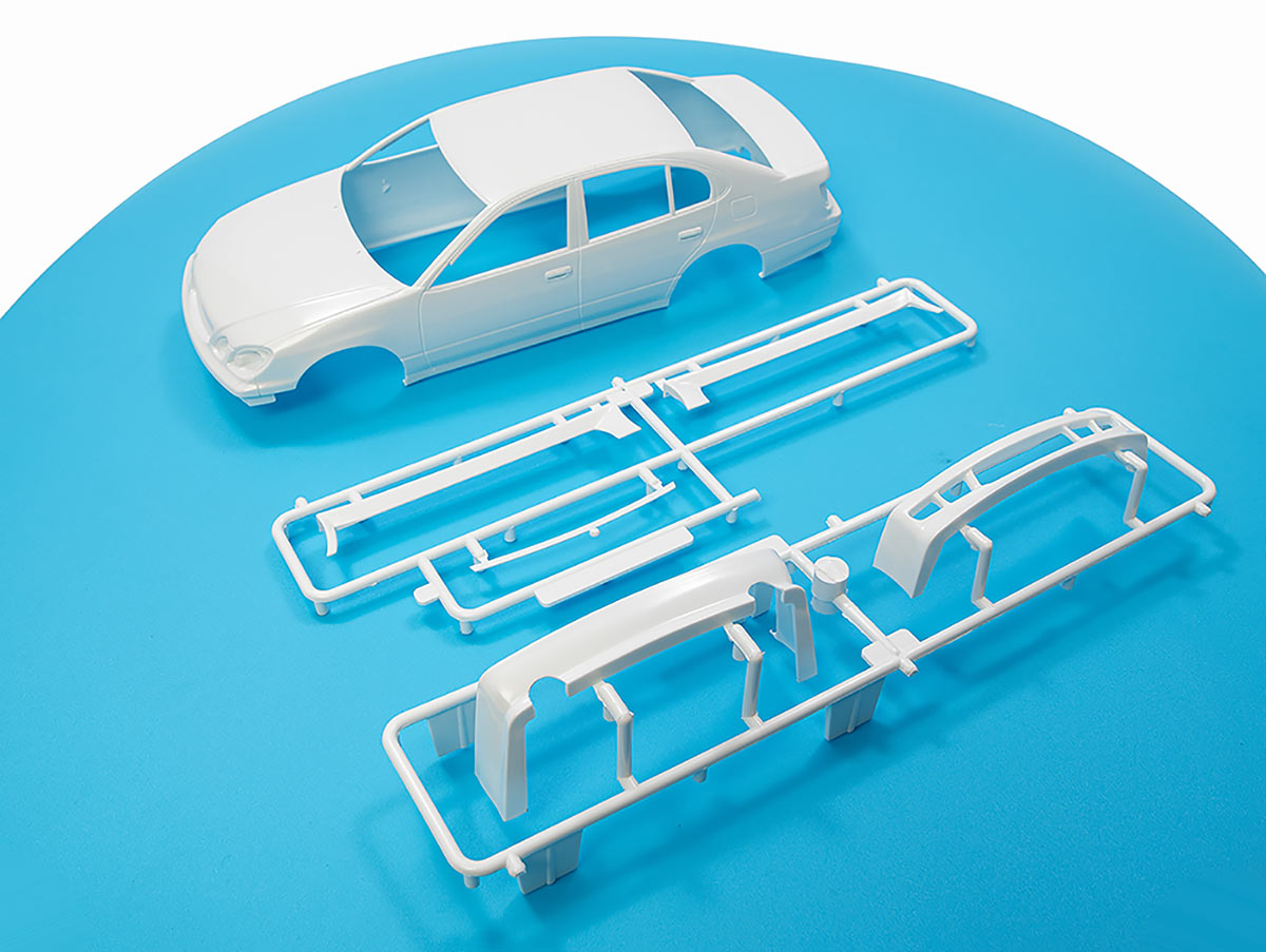 Кузов автомобиля отлит единой деталью из пластика белого цвета.