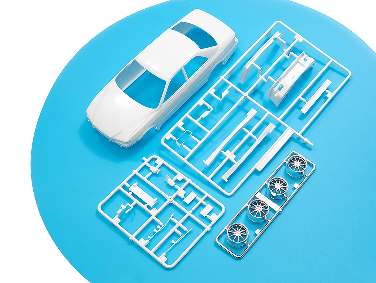 Модель имеет высокую степень детализации. Тюнинговая версия автомобиля с спойлером переднего бампера spec II, боковой подножкой, спойлером заднего бампера,антикрылом, гоночным глушителем Nur-spec, колесами TECHNO SPEED Z1.