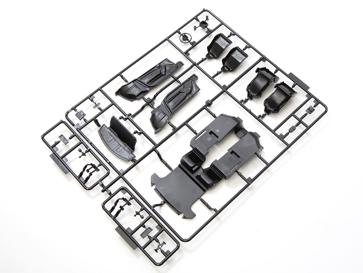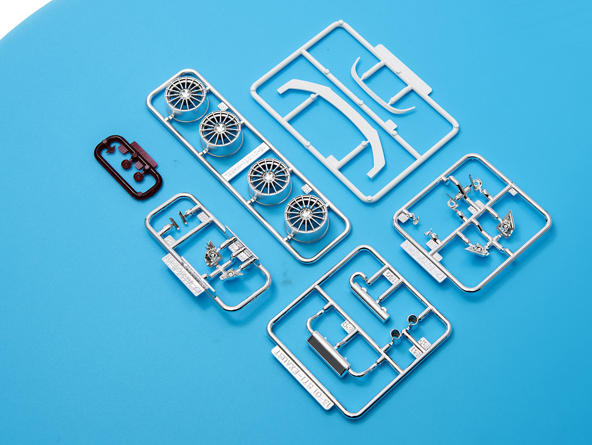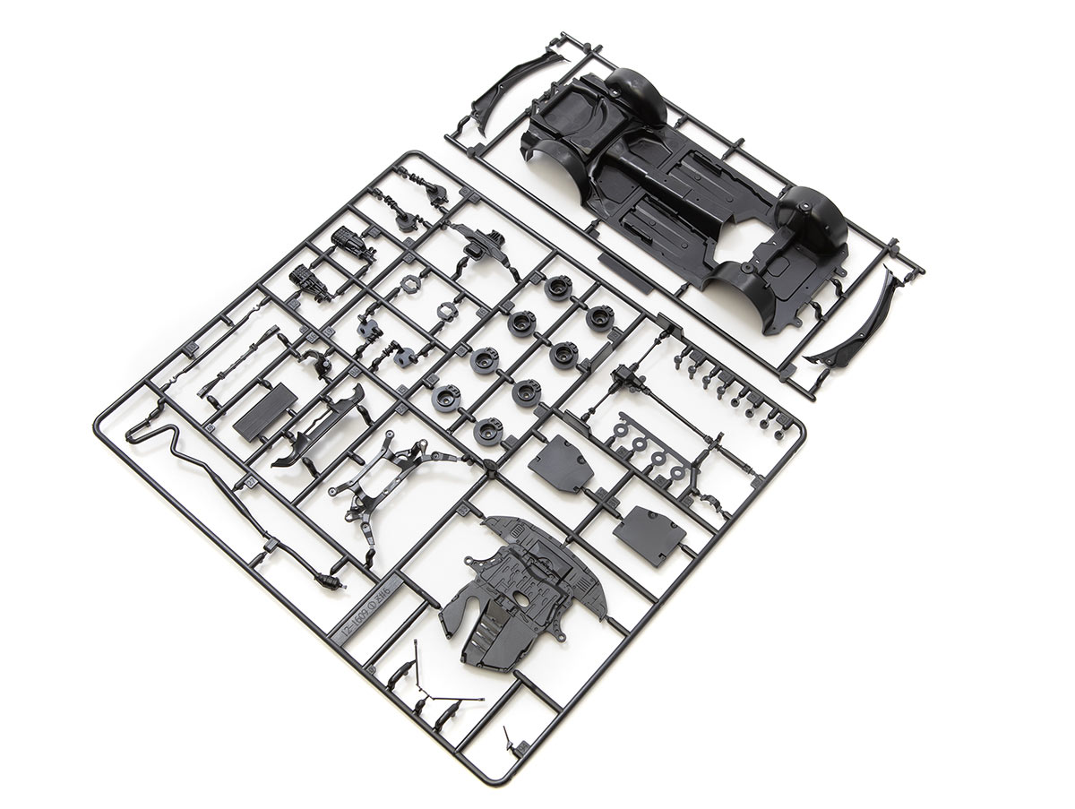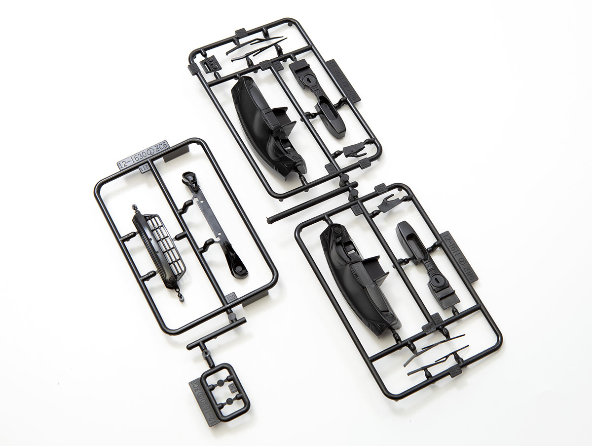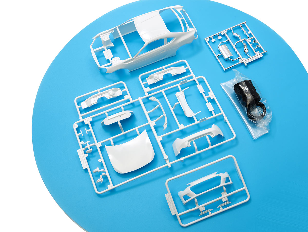 Кузов отлит единой деталью из пластика белого цвета. Капот, крышка багажника и бампера даны отдельно.