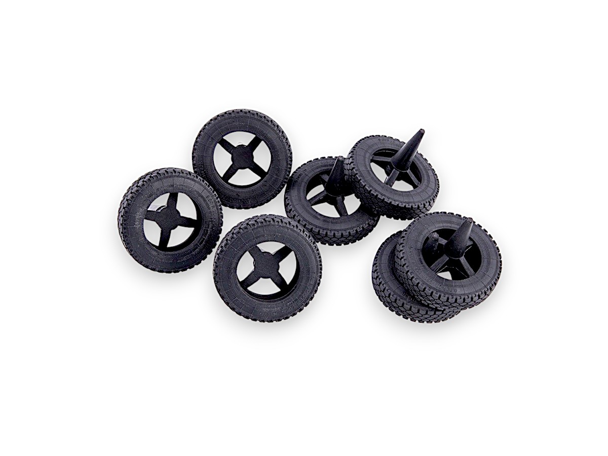Покрышки из синтетической резины с реалистичным рисунком протектора.