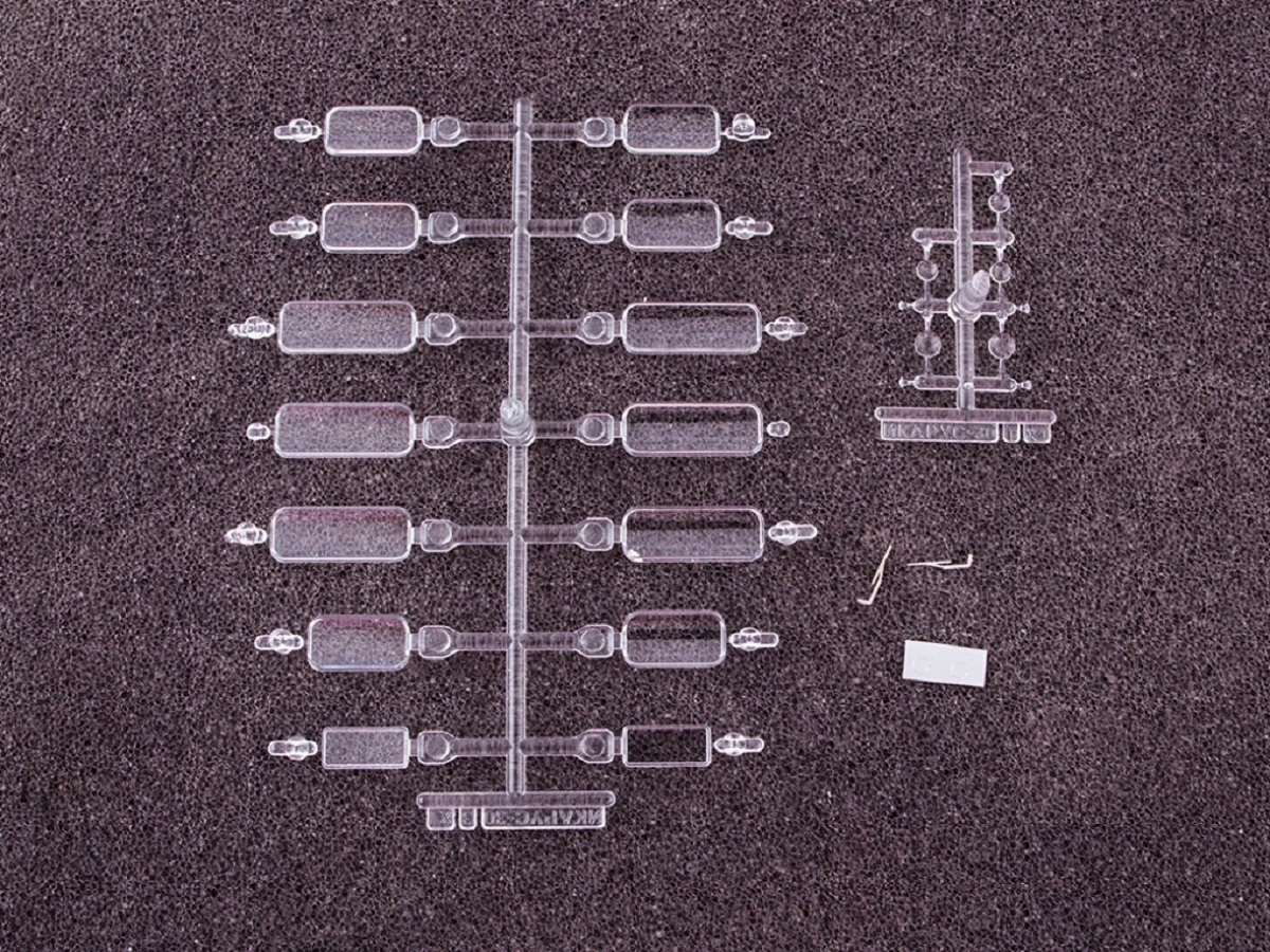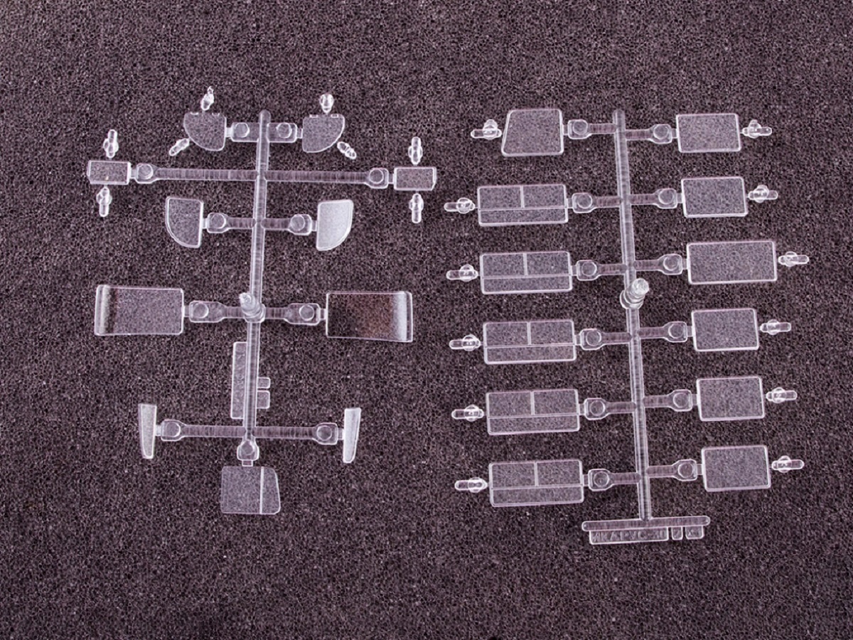 Содержит детали из прозрачного пластика для элементов остекления.
