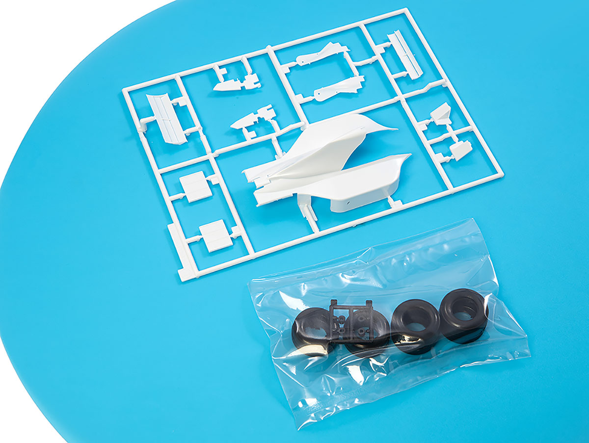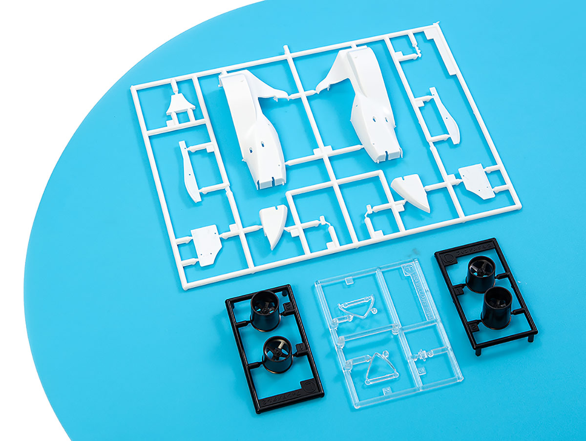 Набор состоит из отдельных пластиковых элементов, собираемых при помощи специального клея.