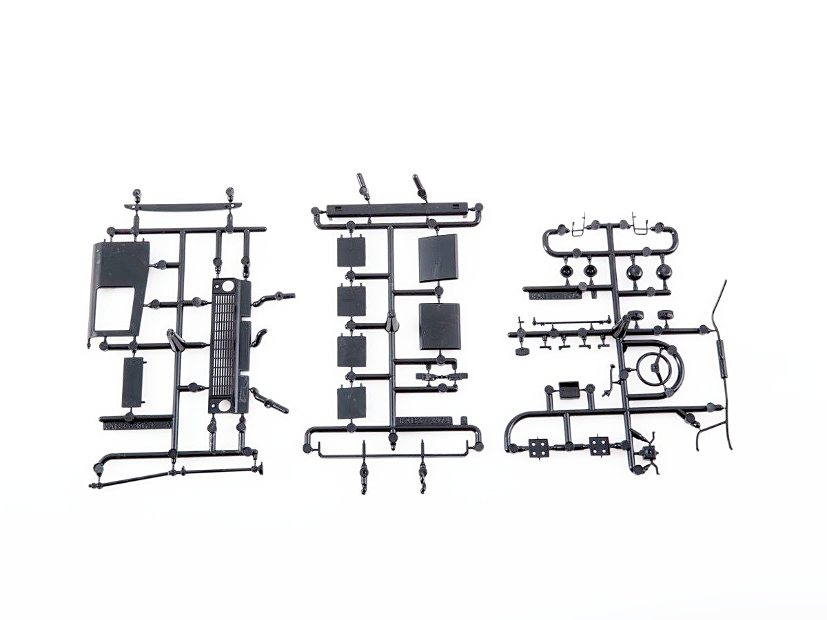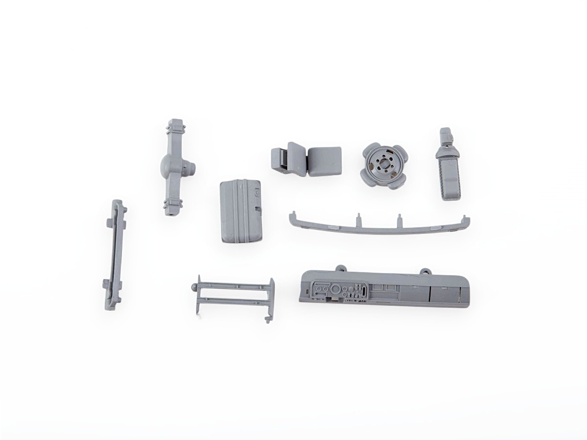 Набор состоит из отдельных элементов из смолы и пластика, собираемых при помощи клея.