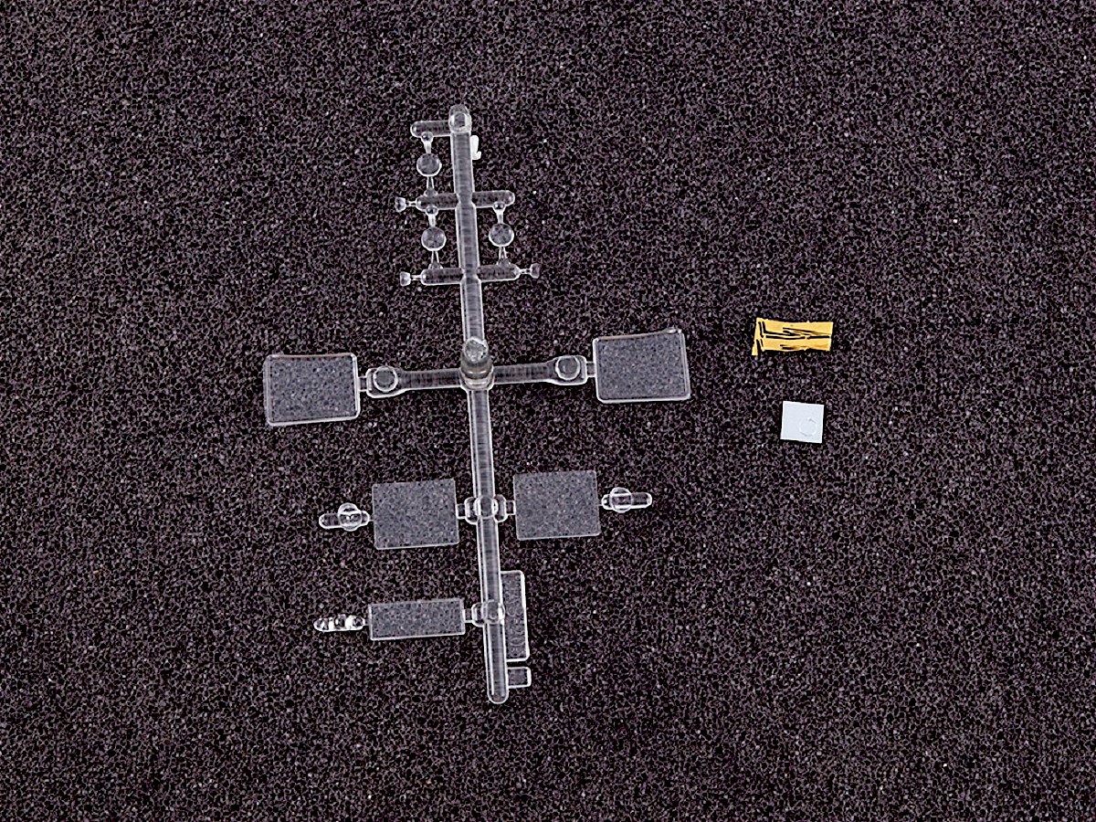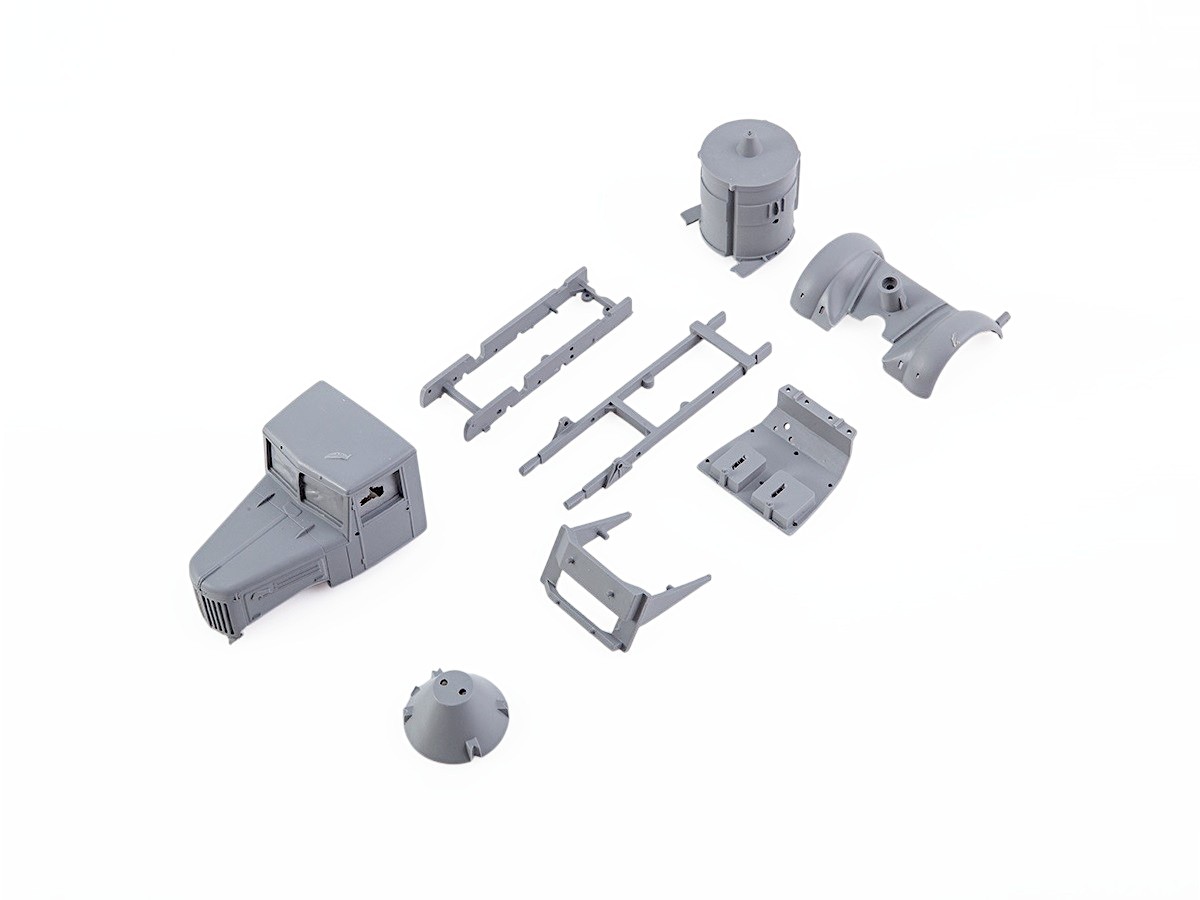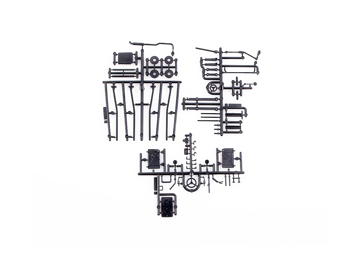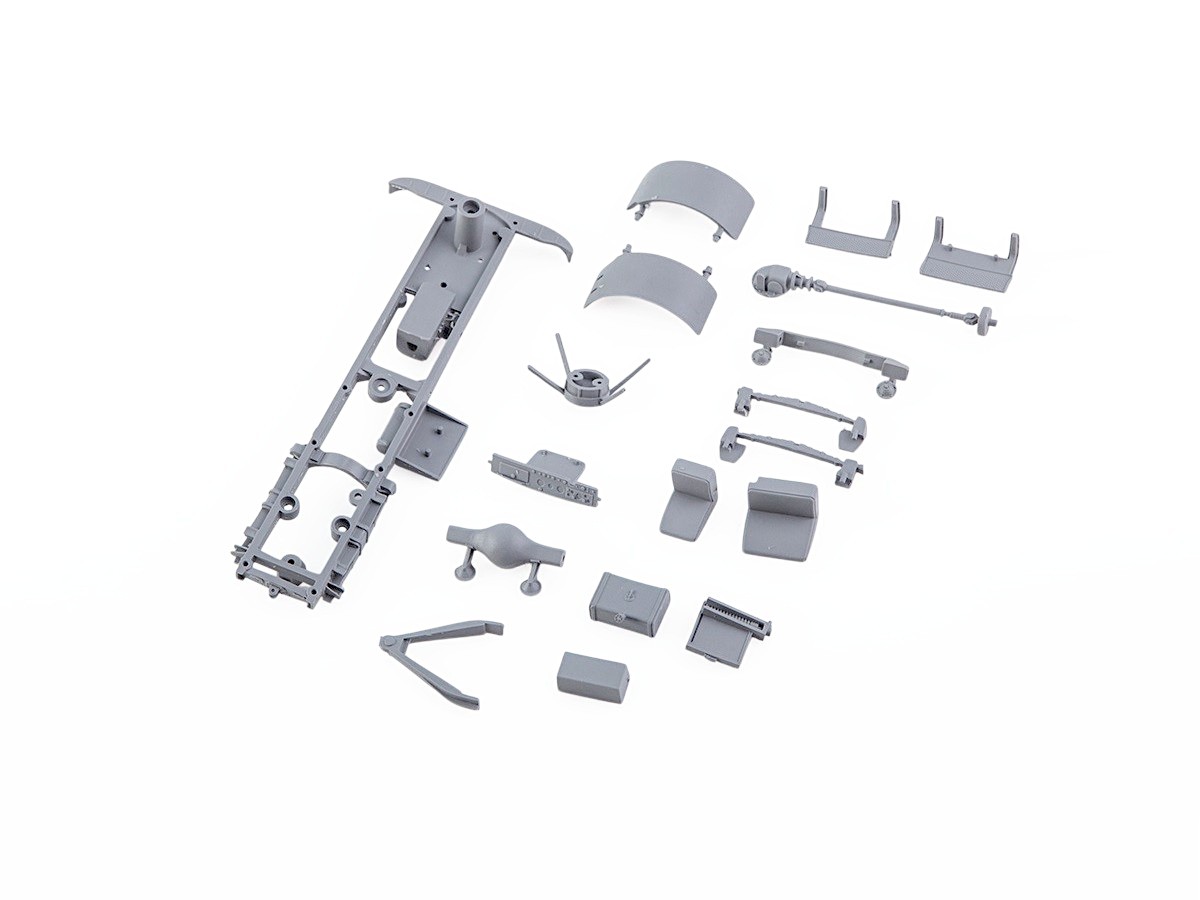 Набор состоит из отдельных элементов из смолы и пластика собираемых при помощи клея.