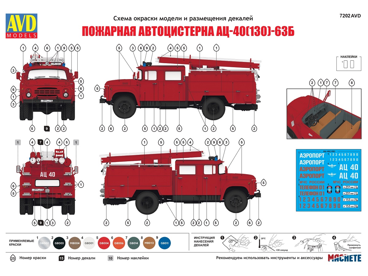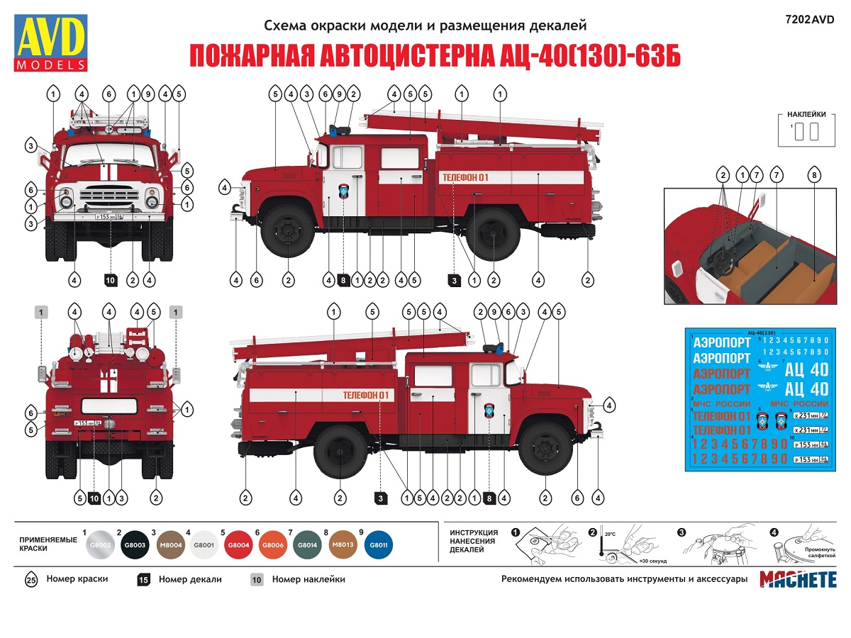 7202 AVD Models АЦ-40 (130)-63Б пожарная автоцистерна (1:72)