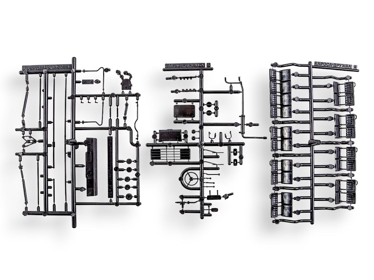 Набор состоит из отдельных элементов из смолы и пластика, собираемых при помощи клея.
