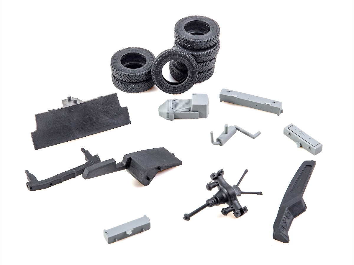 Набор состоит из отдельных элементов из смолы и пластика, собираемых при помощи клея.
