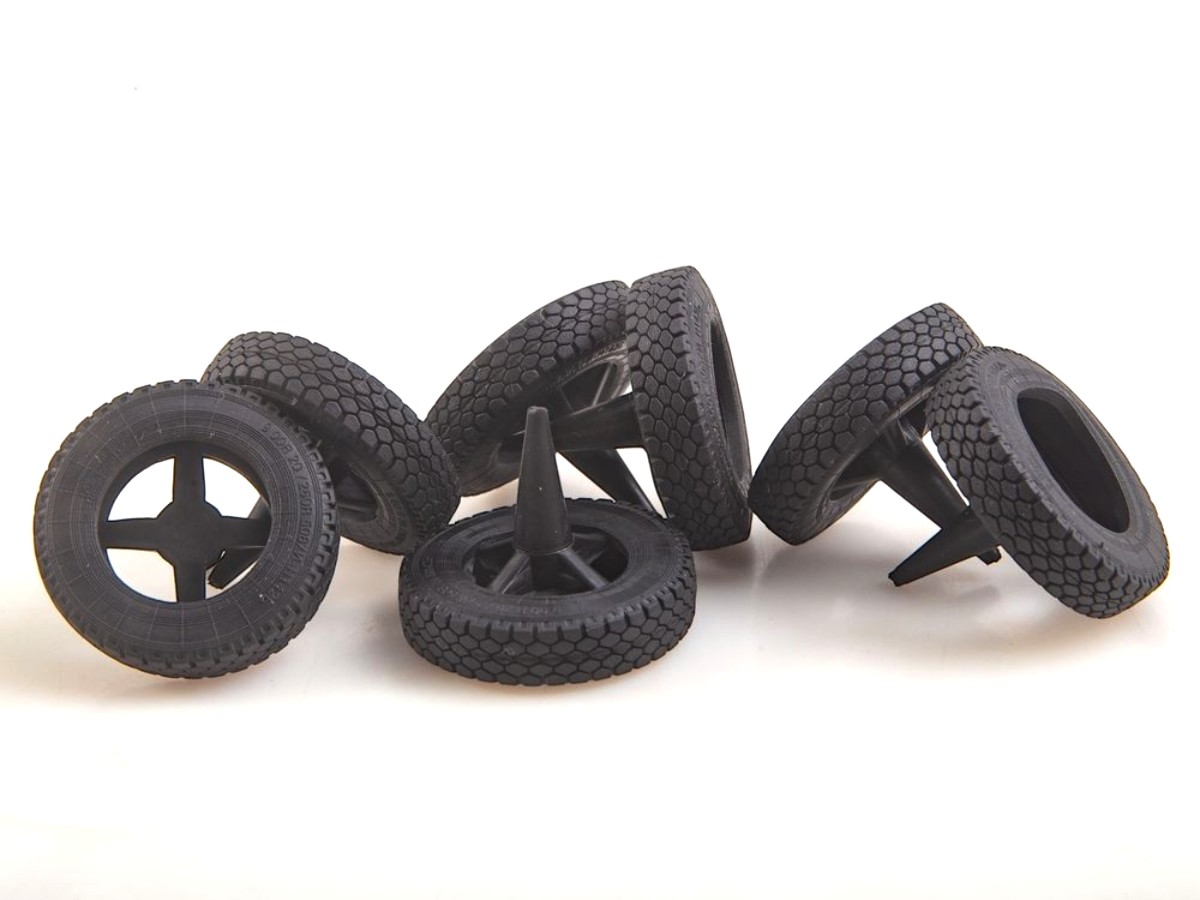 Покрышки из синтетической резины с реалистичным рисунком протектора.