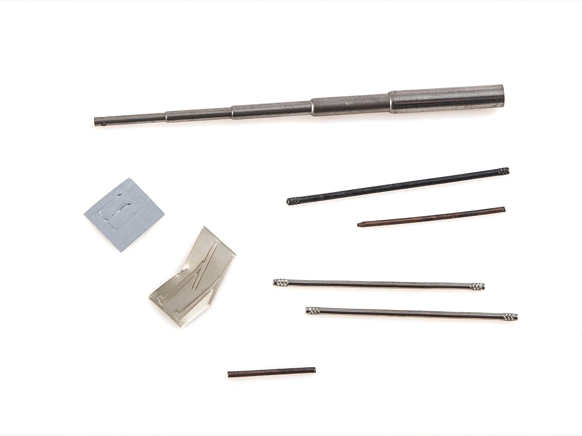 Содержит мелкие металлические элементы (оси колёс, телескопический подъёмный механизм и дворники).