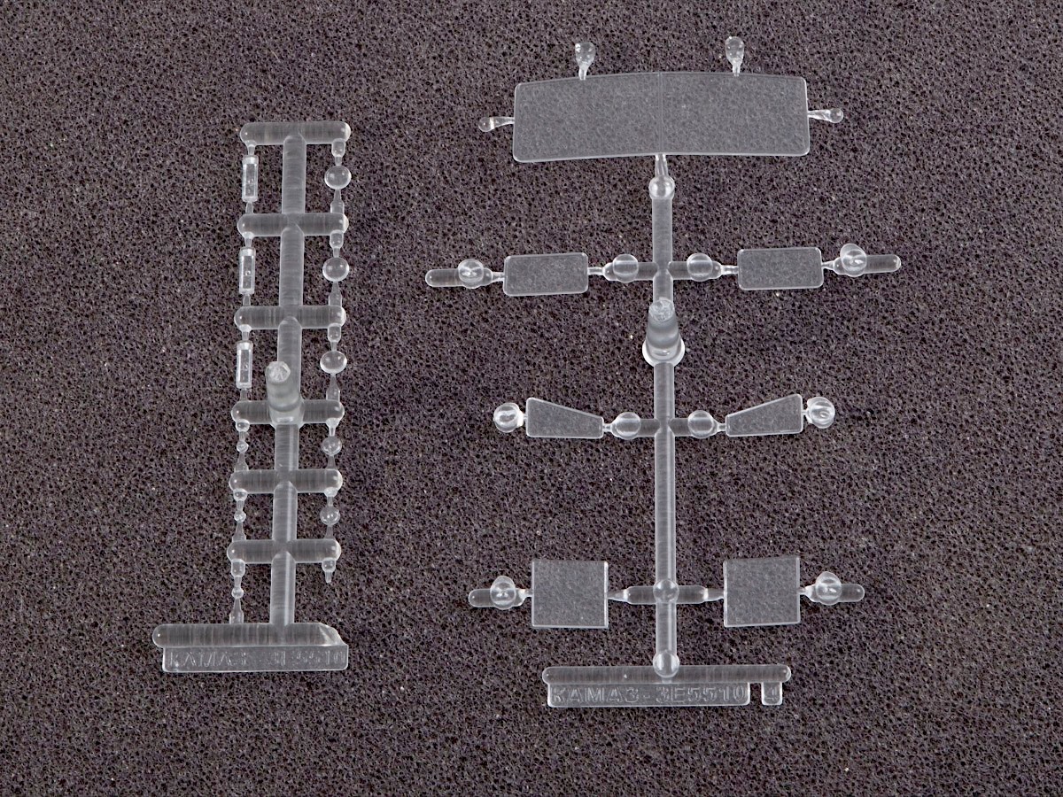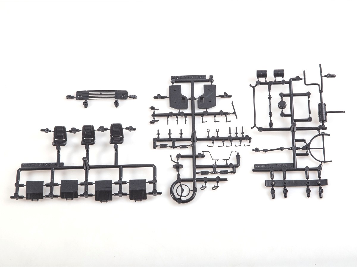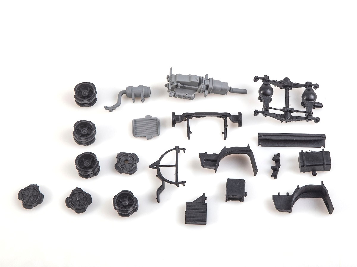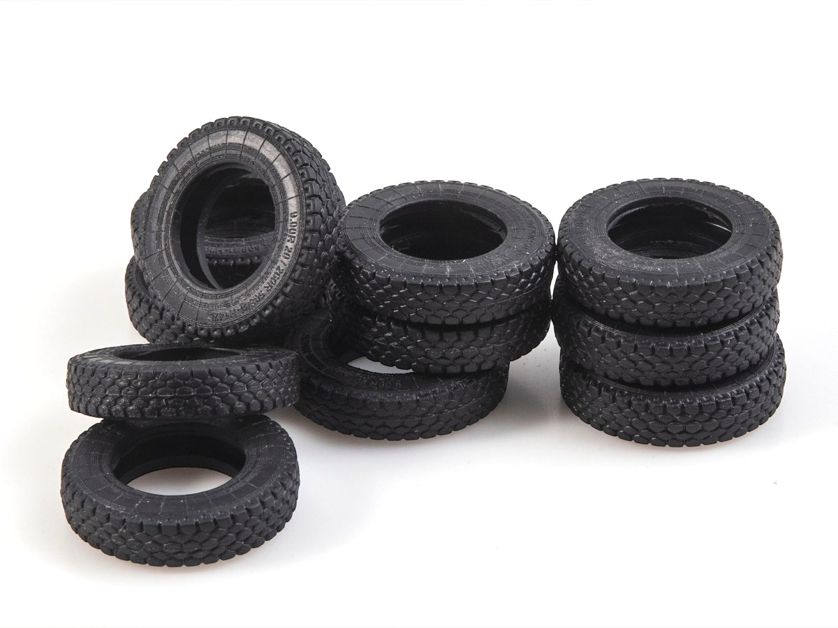 Покрышки с реалистичным рисунком протектора из синтетической резины. Детали из прозрачного пластика для элементов остекления.