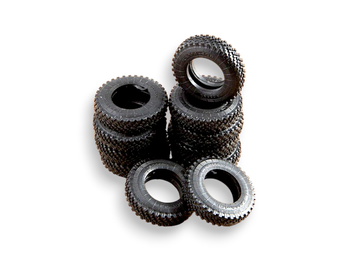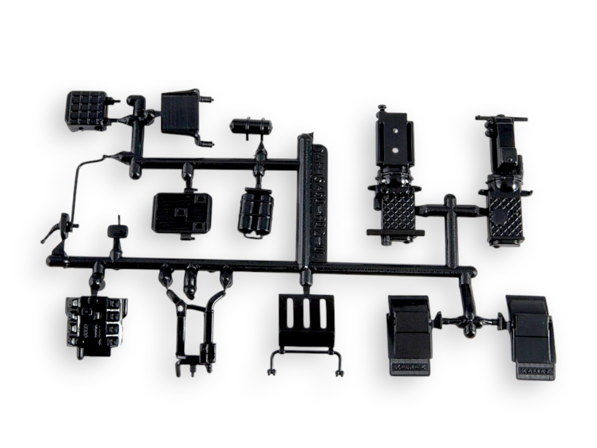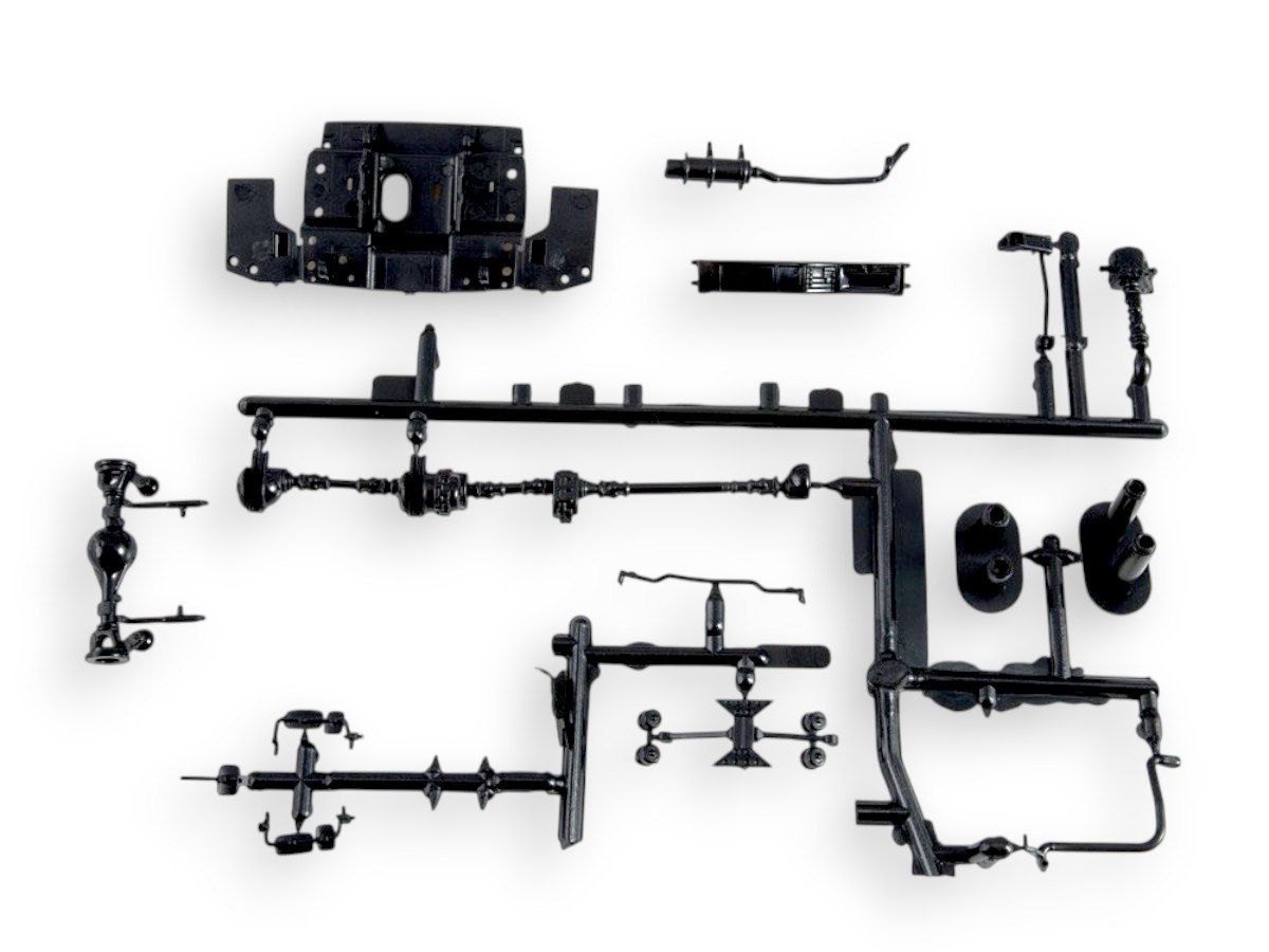 Покрышки с реалистичным рисунком протектора из синтетической резины. Детали из прозрачного пластика для элементов остекления.