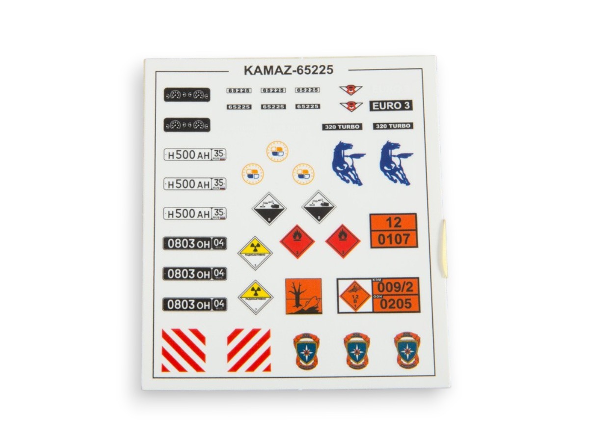 В набор входит цветная декаль для номерных знаков, приборов, эмблем и обозначений.