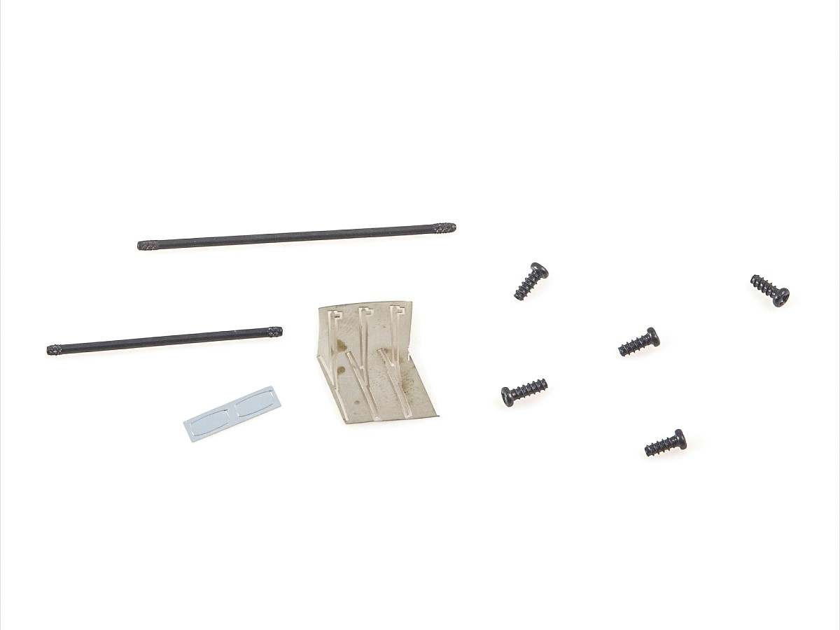 Содержит мелкие металлические элементы (оси колёс, крепёжные винты и дворники).