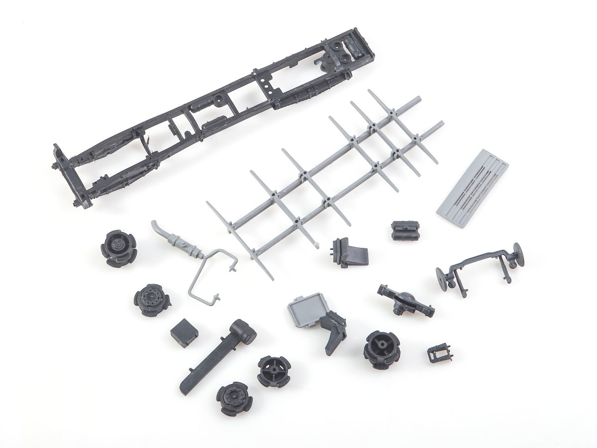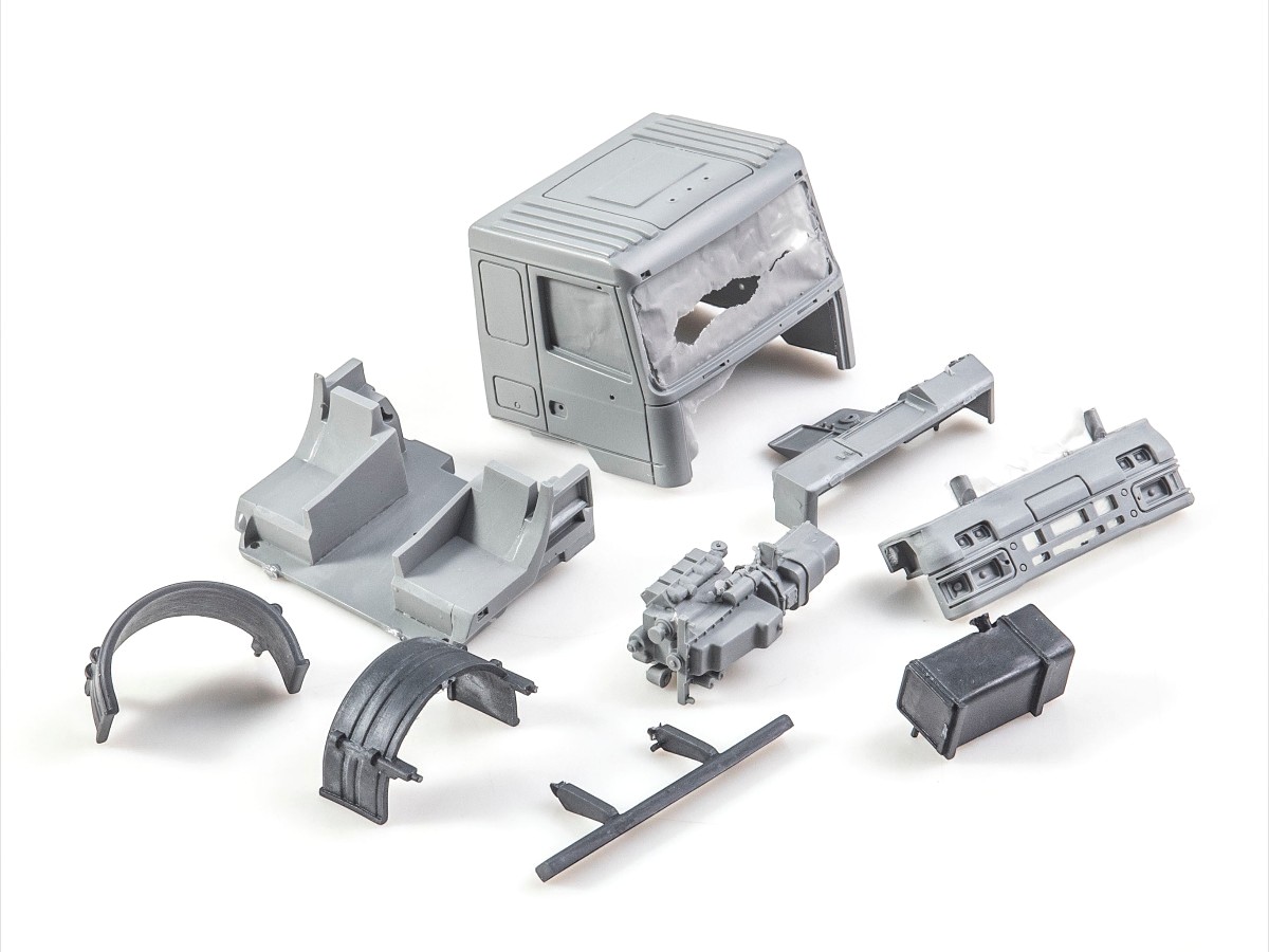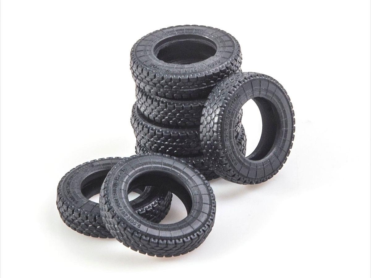 Покрышки с реалистичным рисунком протектора из синтетической резины. Детали из прозрачного пластика для элементов остекления.