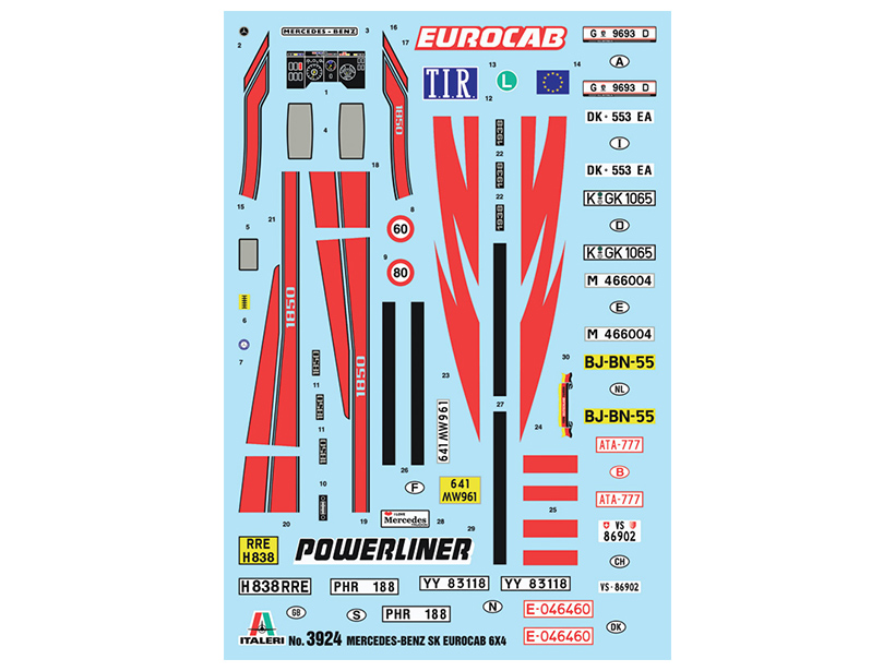 3924 Italeri Седельный тягач Mercedes-Benz SK Eurocab 6x4 (Высокая кабина) (1:24)