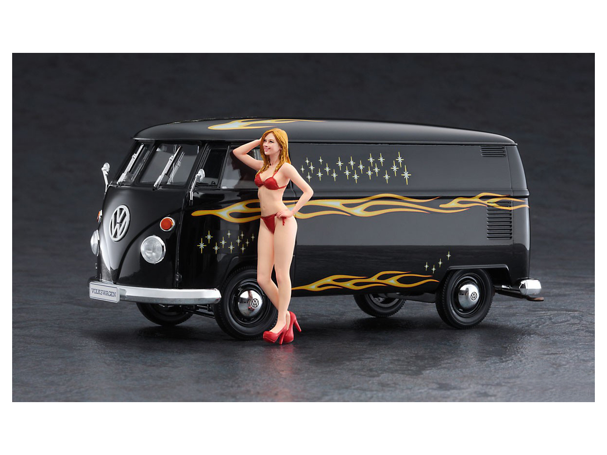 52264 Hasegawa Автомобиль Volkswagen Type 2 Delivery Van "Fire Pattern" с фигуркой блондинки (1:24)
