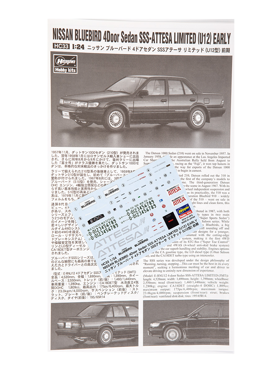21133 Hasegawa Автомобиль Nissan Bluebird 4Door (1:24)