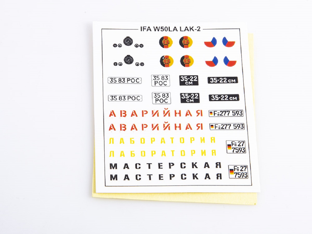В комплекте цветная декаль для 3-х вариантов маркировки.