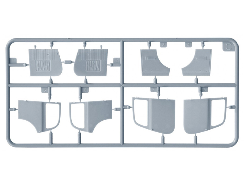 В комплекте реалистично выполненные элементы кузова, салона, ходовой части и мотора, элементы из прозрачного пластика для стекол кабины, салона и фар, фототравленные элементы и фигура женщины.