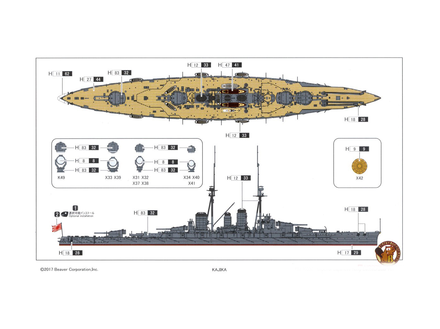 KM70003 Kajika WWI Линейный крейсер японского императорского флота Haruna 1915 г. (1:700)