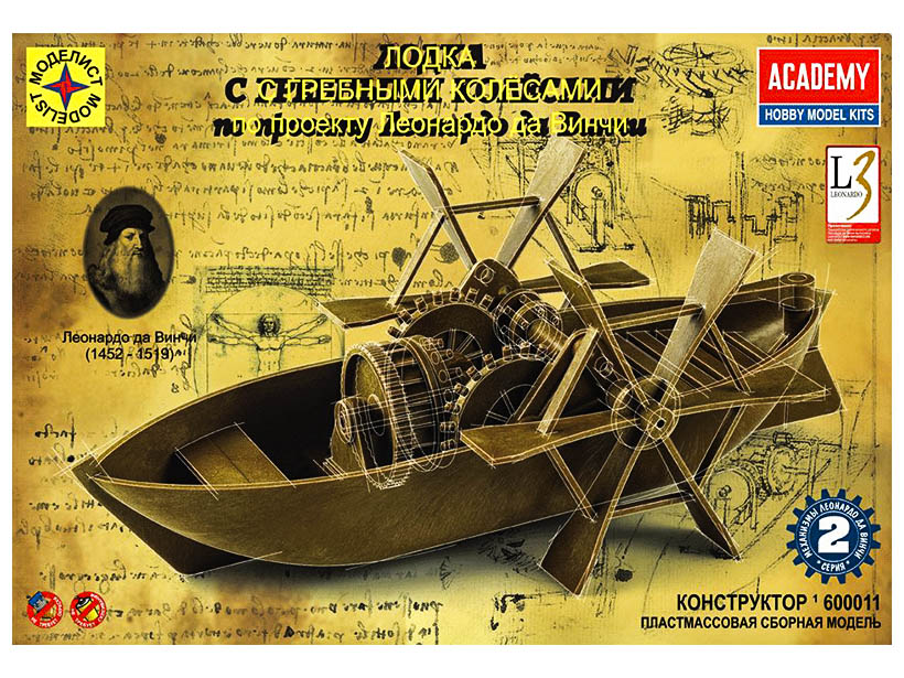 600011 Моделист Лодка с гребными колесами по проекту Леонардо да Винчи