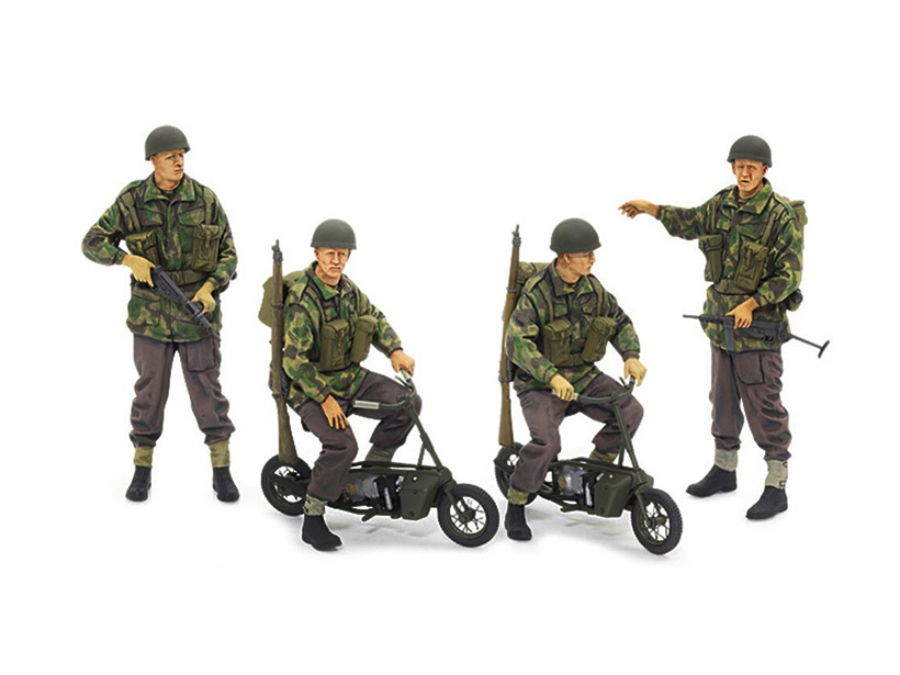 35337 Tamiya Английские парашютисты с двумя складными мотоциклами. Четыре фигуры. (1:35)