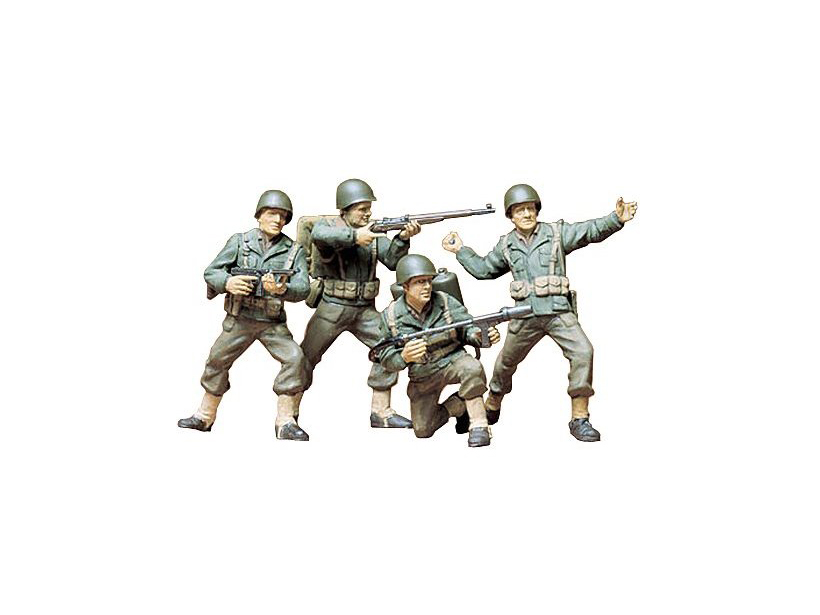 35013 Tamiya Американские пехотинцы в атаке (4 фигуры) с 8 видами оружия и 2 подставками (1:35)