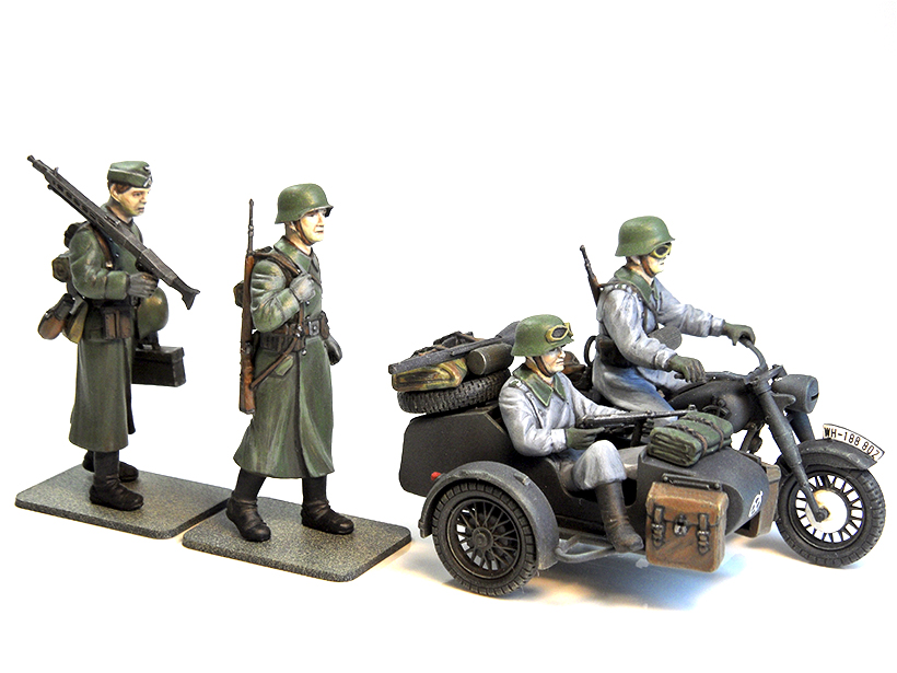 35016 Tamiya Немецкие мотоциклисты на BMW R75 с коляской 4 фигуры (1:35)